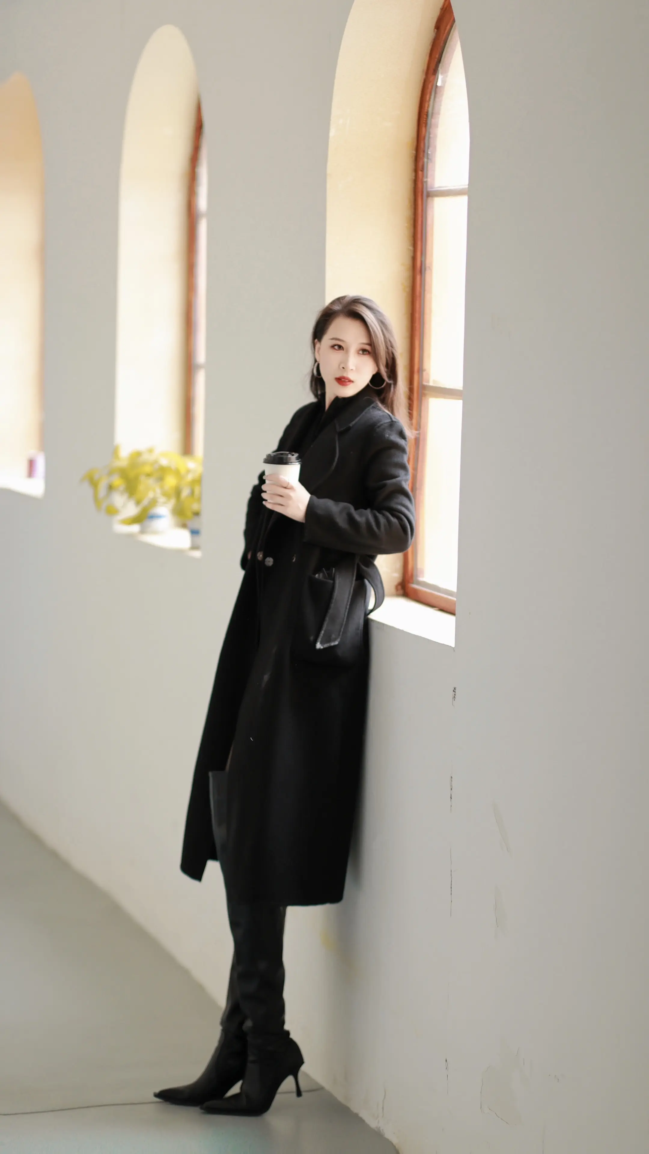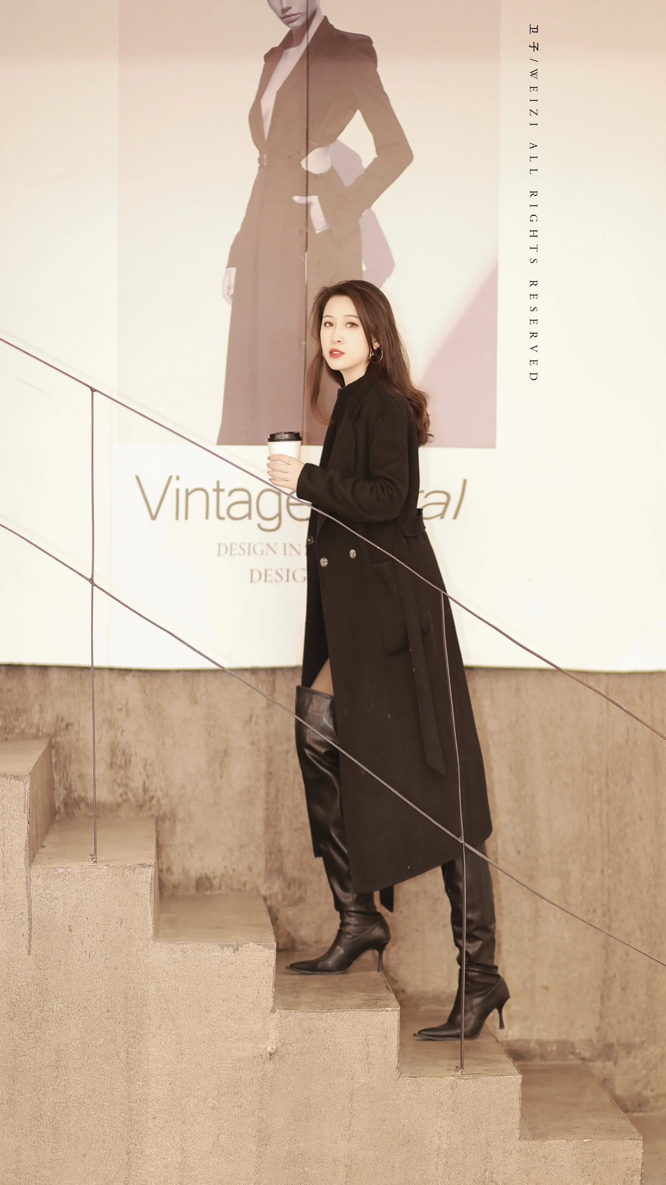 长筒靴拍照。