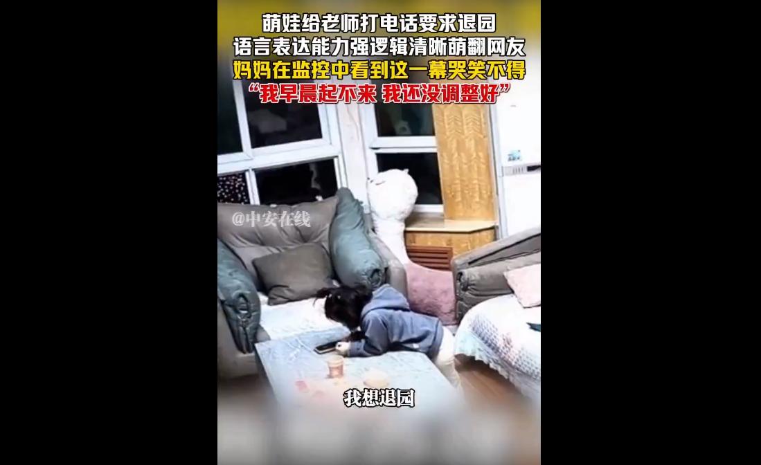 2026年3月19日,山东一名3岁萌娃因不适应早起作息,偷偷致电幼儿园园长申请退园,通话中逻辑清晰、礼貌周全,明确称是自身作息问题,与园方无关。 妈妈通过监控目睹全程哭笑不得,事件因萌娃的成熟表达登上热搜,引发网友共鸣,也带出幼儿入园适应困境的教育讨论。 萌娃的“神仙表达”固然讨喜,3岁年纪能条理清晰地陈述诉求、礼貌沟通,甚至懂得区分个人问题与外界因素,远超同龄孩子的语言与思维能力,难怪网友直呼“耗尽毕生脑细胞”“做了小时候不敢做的事”。 这种勇敢表达自我的行为,确实值得肯定,也戳中了无数人幼时不敢反抗、被迫早起上学的共鸣点,成为全网解压的趣味谈资。 可舆论的狂欢之下,恰恰暴露了大众对幼儿入园焦虑的漠视。 大家只看到了萌娃的可爱,却忽略了“早晨起不来”背后,是孩子对集体作息、入园生活的不适应。 3岁幼儿刚脱离家庭步入幼儿园,面对陌生环境、固定作息、集体规则,出现抵触、焦虑情绪本是常态,可这份本该被重视、被疏导的情绪,却被当成了趣味段子,实在令人唏嘘。 更值得警惕的是,不少家长把孩子的抵触情绪当成“矫情”“不听话”,一味强迫孩子适应,却不愿蹲下身子倾听孩子的真实感受。 萌娃选择偷偷致电园长,而非向父母倾诉,恰恰说明孩子的情绪需求未被家长及时察觉,亲子沟通存在缺位。 若长期忽视这种适应困境,孩子很可能出现夜哭、拒食、厌学等深层焦虑,影响身心健康成长。 真正的教育,不是强迫孩子妥协,而是读懂孩子的诉求,耐心引导、循序渐进地帮助孩子适应集体生活。 尊重孩子的情绪,正视幼儿的入园焦虑,及时调整作息、做好心理疏导,才是家长该做的事。