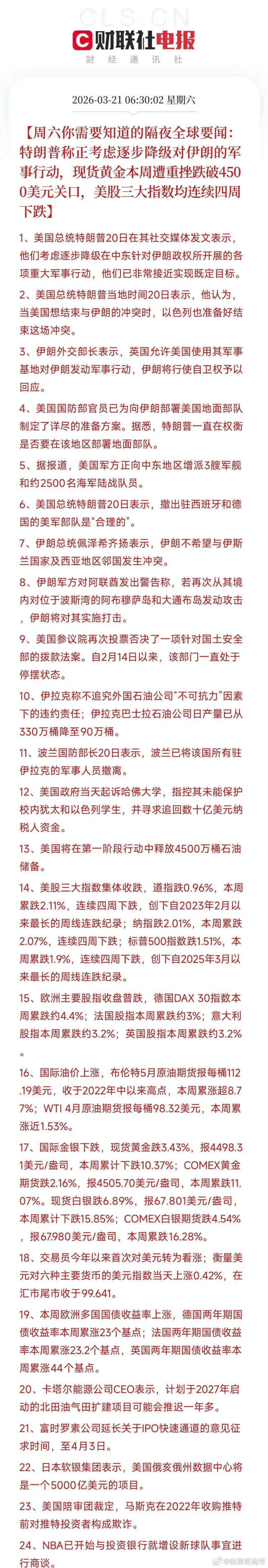 周末利空消息来了!利空消息如下: