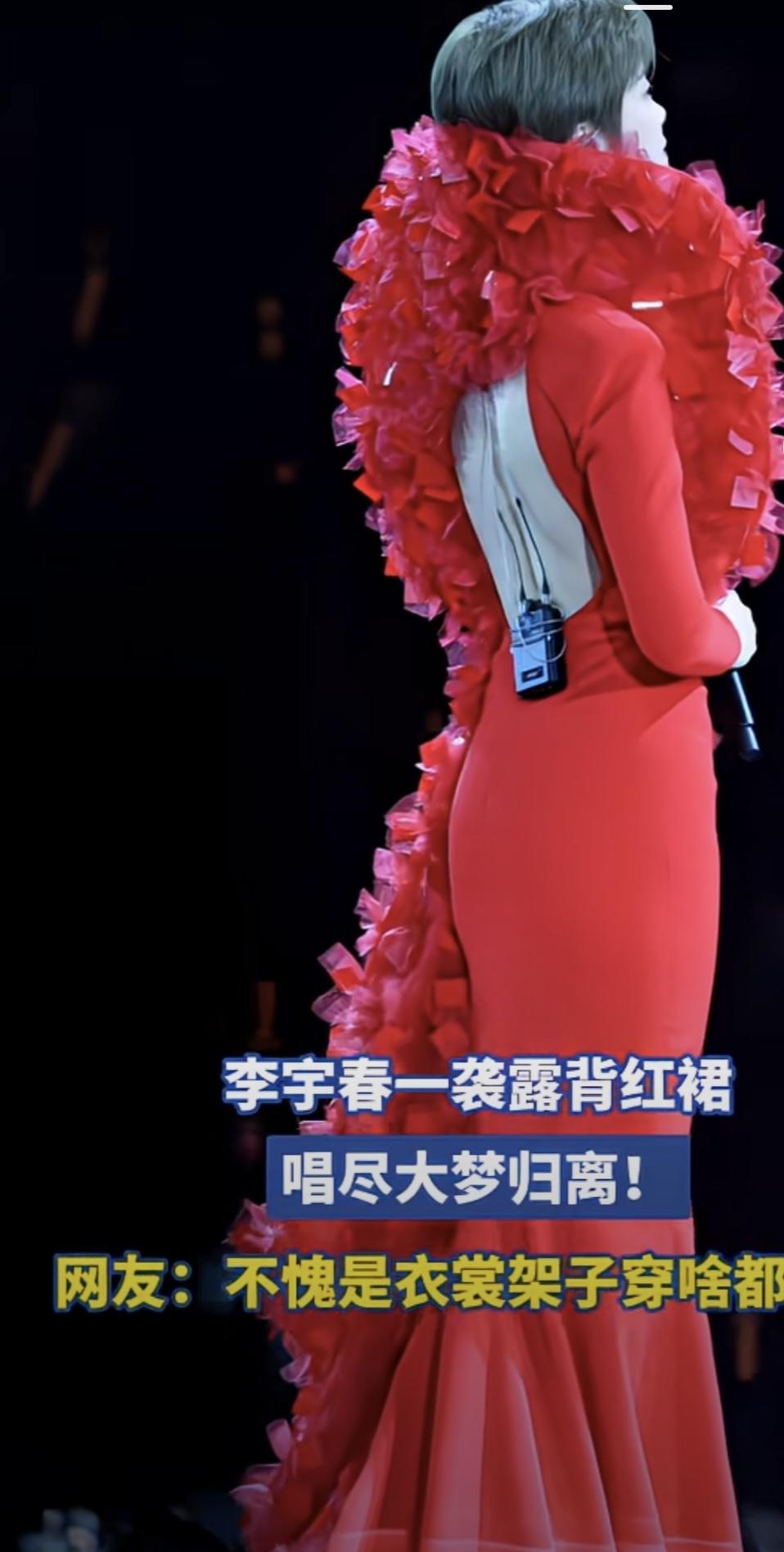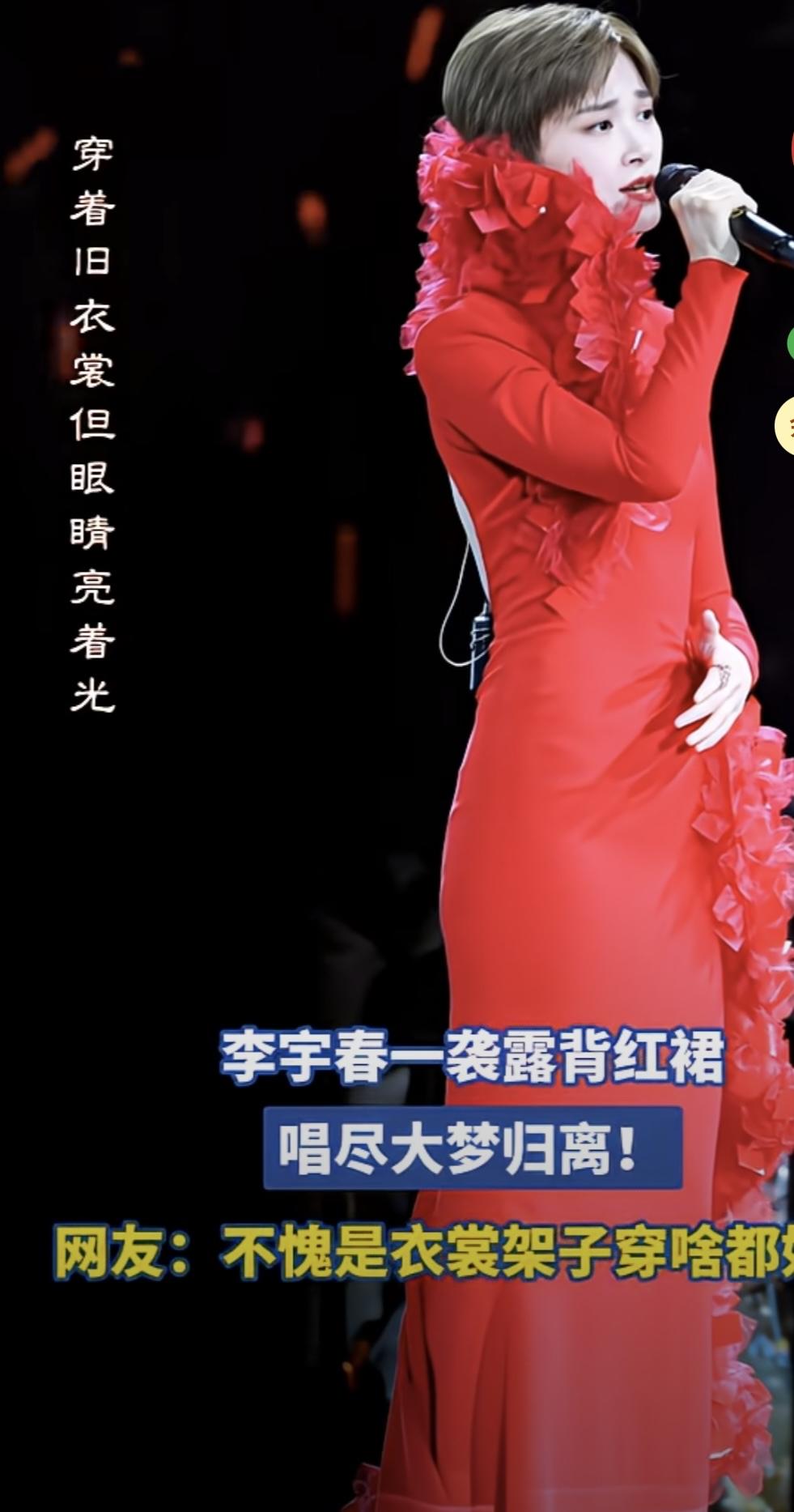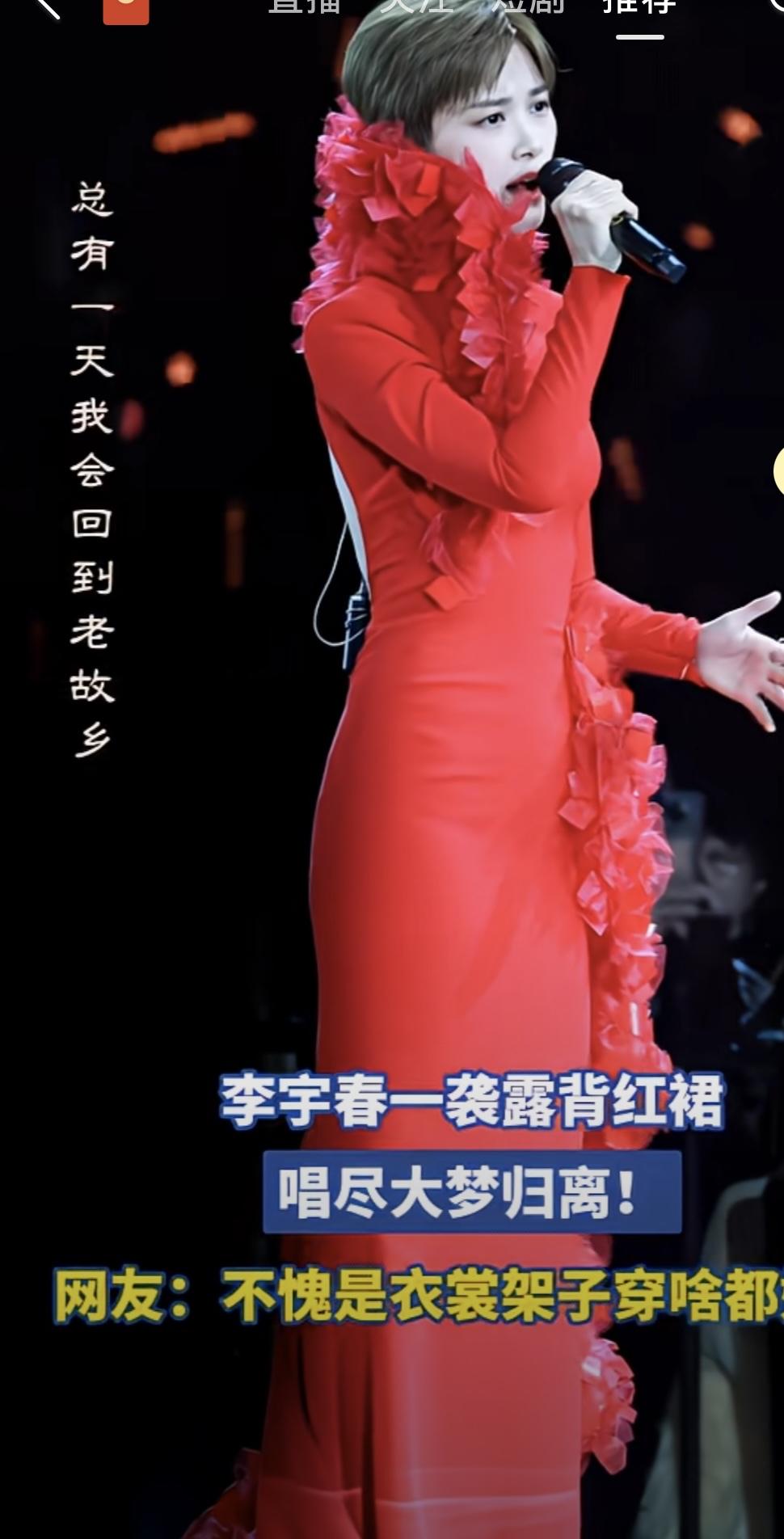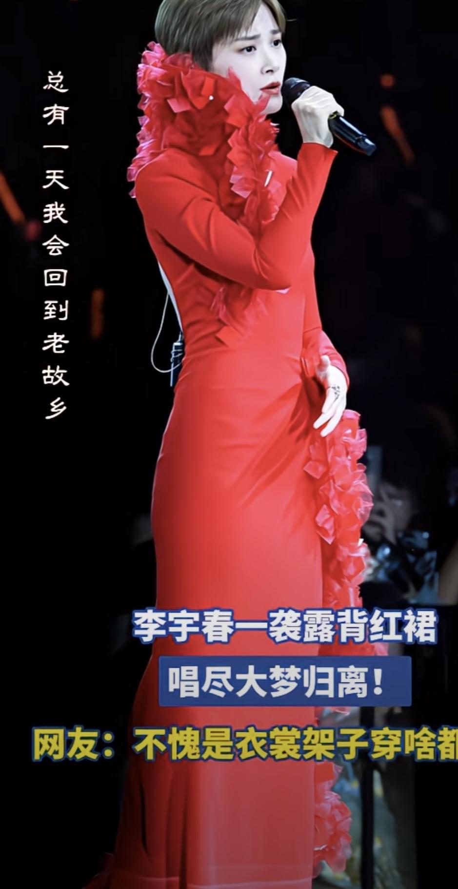 一向以中性打扮示人的李宇春,今天竟如此妖艳 以中性打扮出道20年的李宇春,如今是越来越有女人味了,在最近的一段活动中,身高175的李宇春一袭露背红裙唱进大梦归离,40多岁的人了,身材竟然不值得这么完美。 舞台表演场景中的李宇春,她身着一袭红色露背长裙,裙身带有立体花瓣装饰,勾勒出利落身形,留着清爽的短发,手持麦克风,姿态优雅地仰头演唱。 你们喜欢打扮中性的李宇春呢?还是喜欢女性魅力十足的李宇春呢?