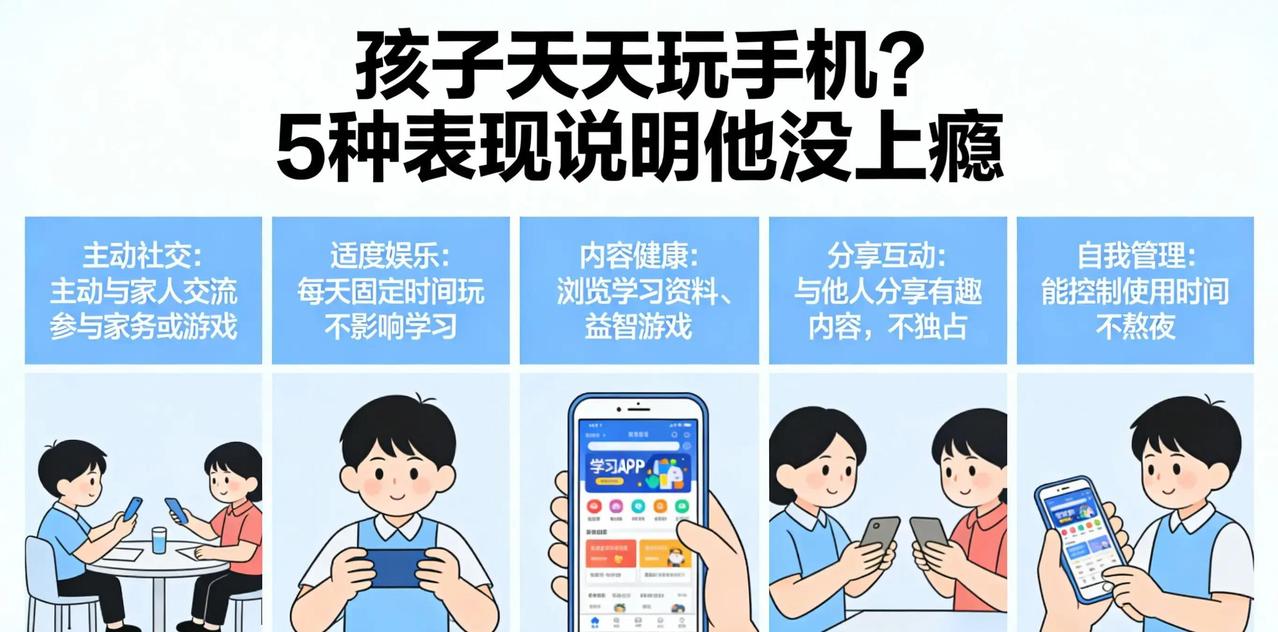 家长越是把手机当成洪水猛兽,孩子越容易偷偷沉迷其中。2025年最新调研显示,我国青少年日均上网超3小时的比例已达13.6%,轻度网络沉迷占比高达48.9%(来源:北京师范大学《2024中国青少年网络使用调研报告》)。可现实里,许多孩子每天拿着手机,却活得井井有条,从不失控。 关键在于,他们把手机当成生活里的辅助工具,而非唯一支柱。那些能轻松掌控的孩子,通常表现出几个鲜明规律:他们早就跟父母商量好明确的使用边界,放学先写完作业再玩半小时,周末完成任务后再放松一小时。这种约定不是大人强压,而是双方一起定的规则,孩子自己参与,自然愿意守住底线。 他们玩手机时,心里清楚这是短暂放松,不是逃避现实。累了刷两分钟视频找灵感,远方亲戚视频聊几句拉近距离。可一旦妈妈喊吃饭、爸爸叫下楼打球,他们能立刻关屏走人,因为现实里的味道、奔跑、拥抱,远比屏幕更真实、更带劲。 数据显示,那些现实生活丰富、兴趣多样的孩子,手机只是点缀。篮球、绘画、阅读、户外活动填满了他们的时间,精力被分散到各个角落,哪有空隙让虚拟世界霸占全部?反过来,生活空虚的孩子,才把手机当成救命稻草。 家长越妖魔化手机,孩子越觉得它神秘诱人。真正有效的家庭,从不一禁了之,而是平等沟通:手机能用,但得有度,一起规划时间。这种氛围下长大的孩子,对手机保持清醒:它是便捷帮手,不是生活主角。 归根结底,孩子能不能健康用手机,取决于父母给不给足安全感和陪伴。规则清晰、热爱多元、边界尊重,这些才是防沉迷的底层逻辑。那些占齐三四个特征的孩子,其实根本没上瘾,只是在正常拥抱数字时代