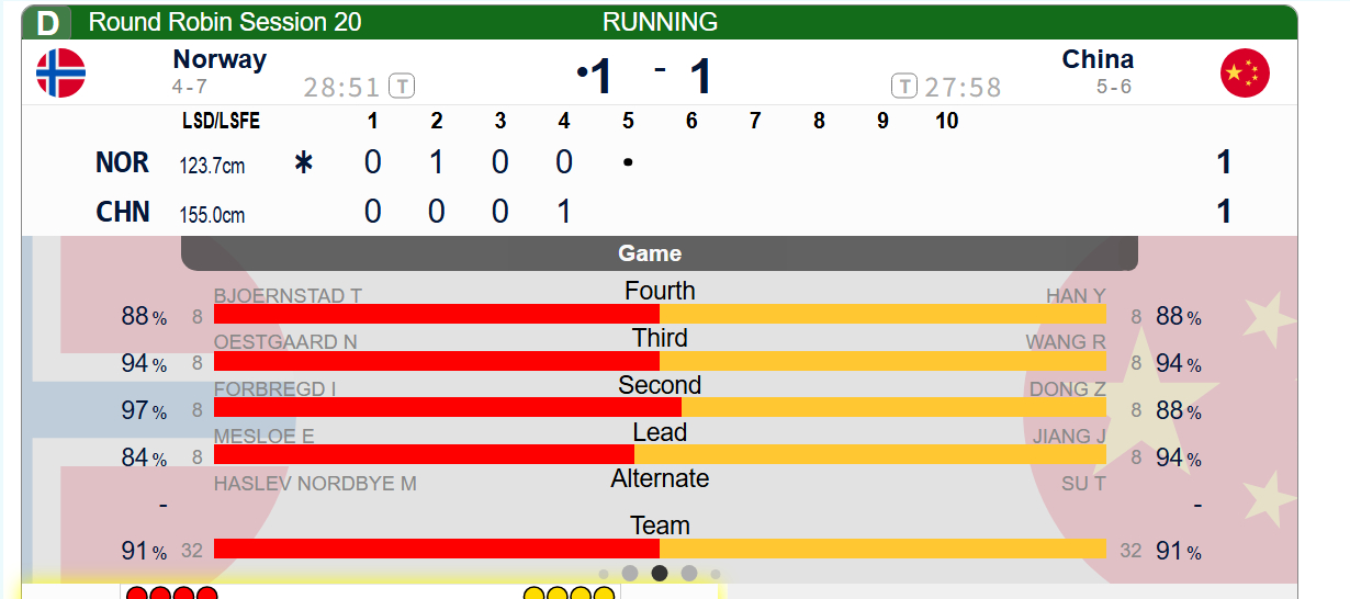 【中国-挪威】第四局挪威清理很到位,中国队没有太好的两分局面,中国后手打定保1,中国1-1挪威