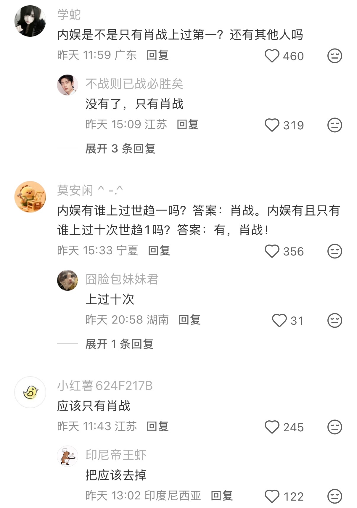 内娱有谁上过世趋第一吗?原来肖战是内娱唯一上过世趋第一的明星,还是上过10次世趋第1的明星肖战粉丝你们完全不宣传啊???? 肖战热成啥样了