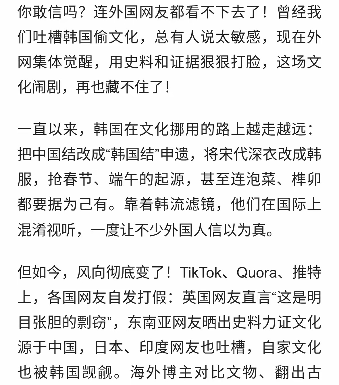 外网也意识到韩国偷文化了韩国还想申遗中国结为“韩国结”真的是文化的小偷,只要是跟中国沾点边的都想偷取,动不动申遗,生怕抢不走咱们的文化。