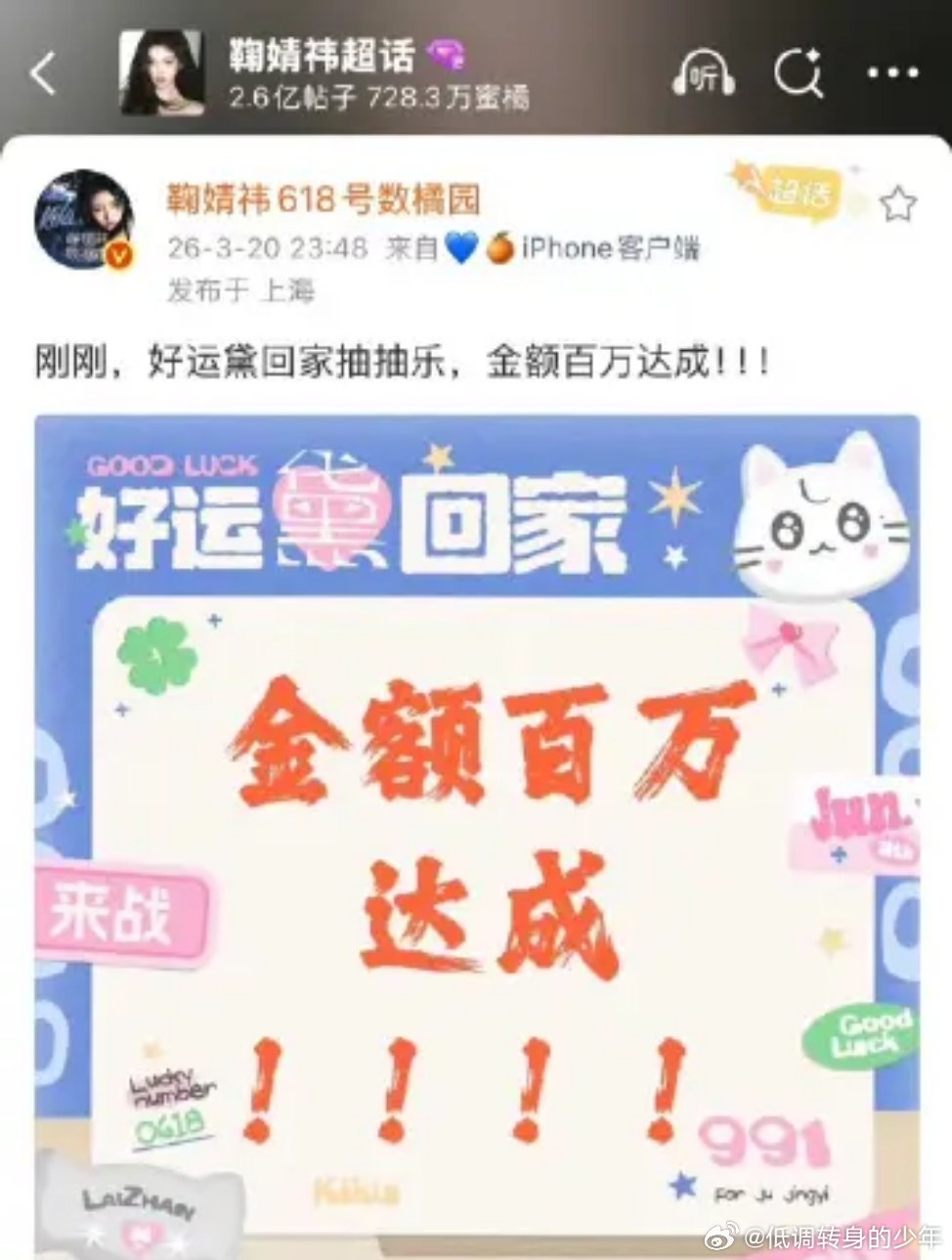 鞠婧祎五大杂志24小时销售额鞠婧祎 不限男女明星第一 抽抽乐上线仅一个小时,总销售额达百万,氪金能力很顶👍
