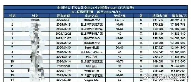 鞠婧祎五大杂志24小时销售额鞠婧祎 不限男女明星第一 抽抽乐上线仅