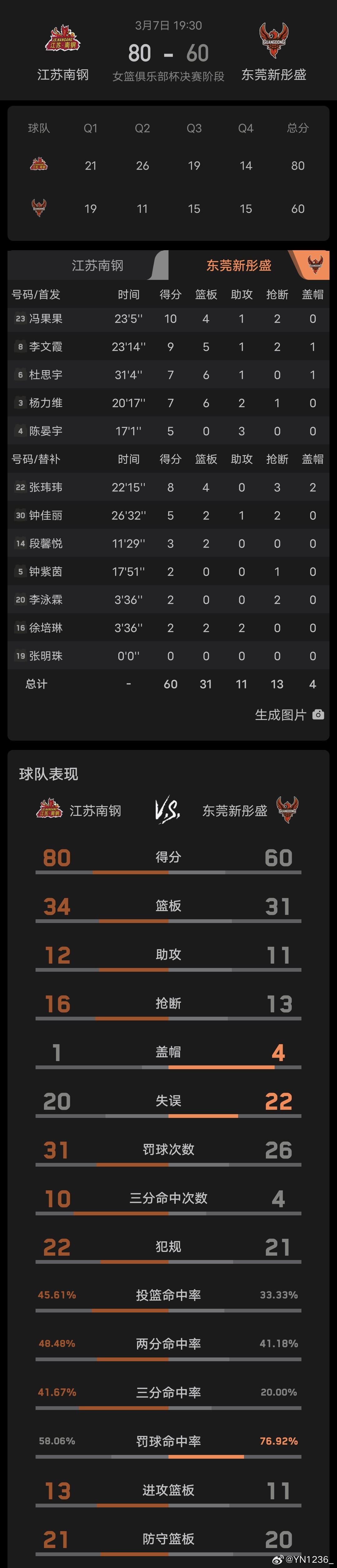 WCBA俱乐部杯决赛阶段第三场: 东莞新彤盛 60 -80 江苏南钢