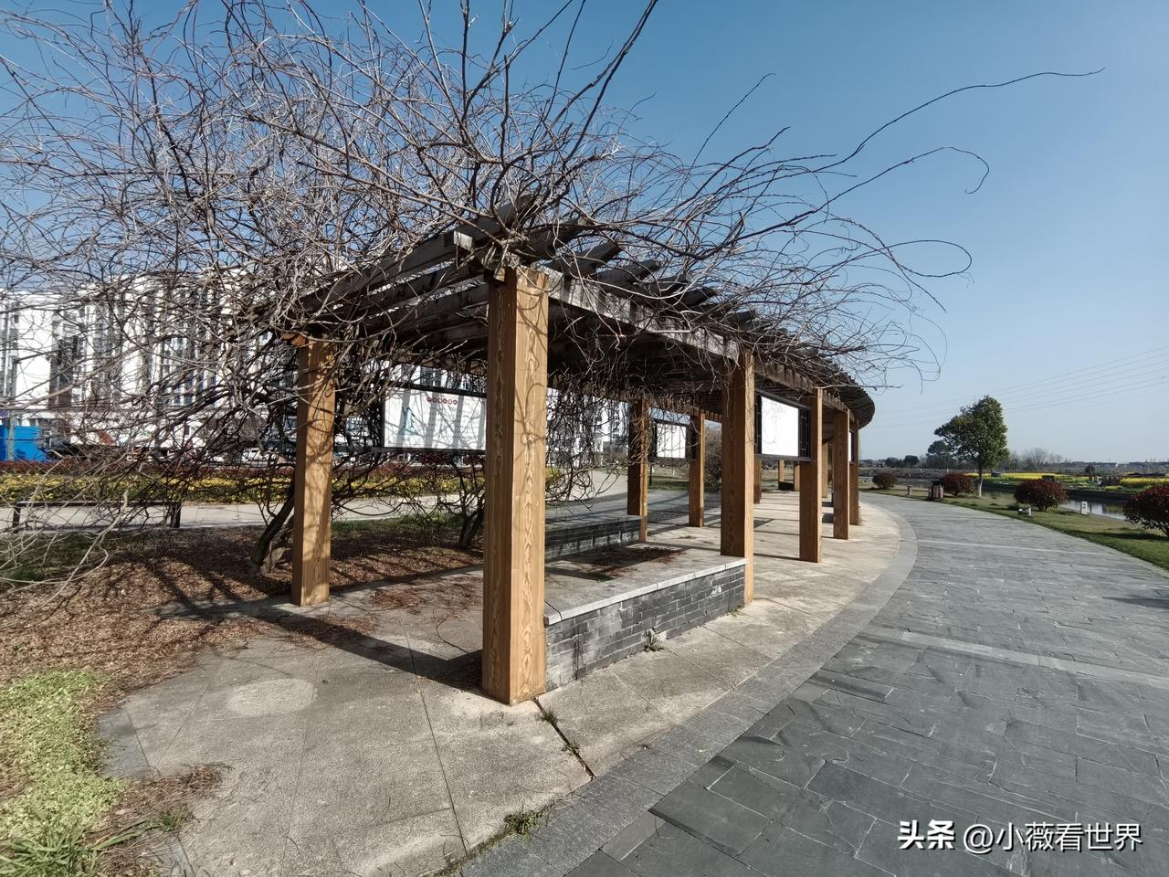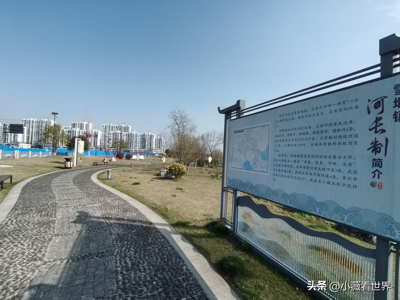 这一条绿化大道,在一条笔直向前的大河边,大大方便了附近的人来这里休闲散步。 太羡慕常州太湖湾佳源广场附近的人了!因为这条沿河的徒步大道,一路花草映衬,真的让人很是赏心悦目。 这个新开辟出来的地方叫河长制主题公园。每隔一段都有凳子供大家坐下休息。 图6图8这里,都是介绍本地历朝历代那些考上功名的优秀人物介绍,让人不自觉中可以增加见识。 而实行河长制,目的还是防止污染,加强管理,让绿水更清,让家乡更美。 我们走在这里,满眼有欣喜,满心是自豪。家乡在变,相信它会越来越美,越来越好的