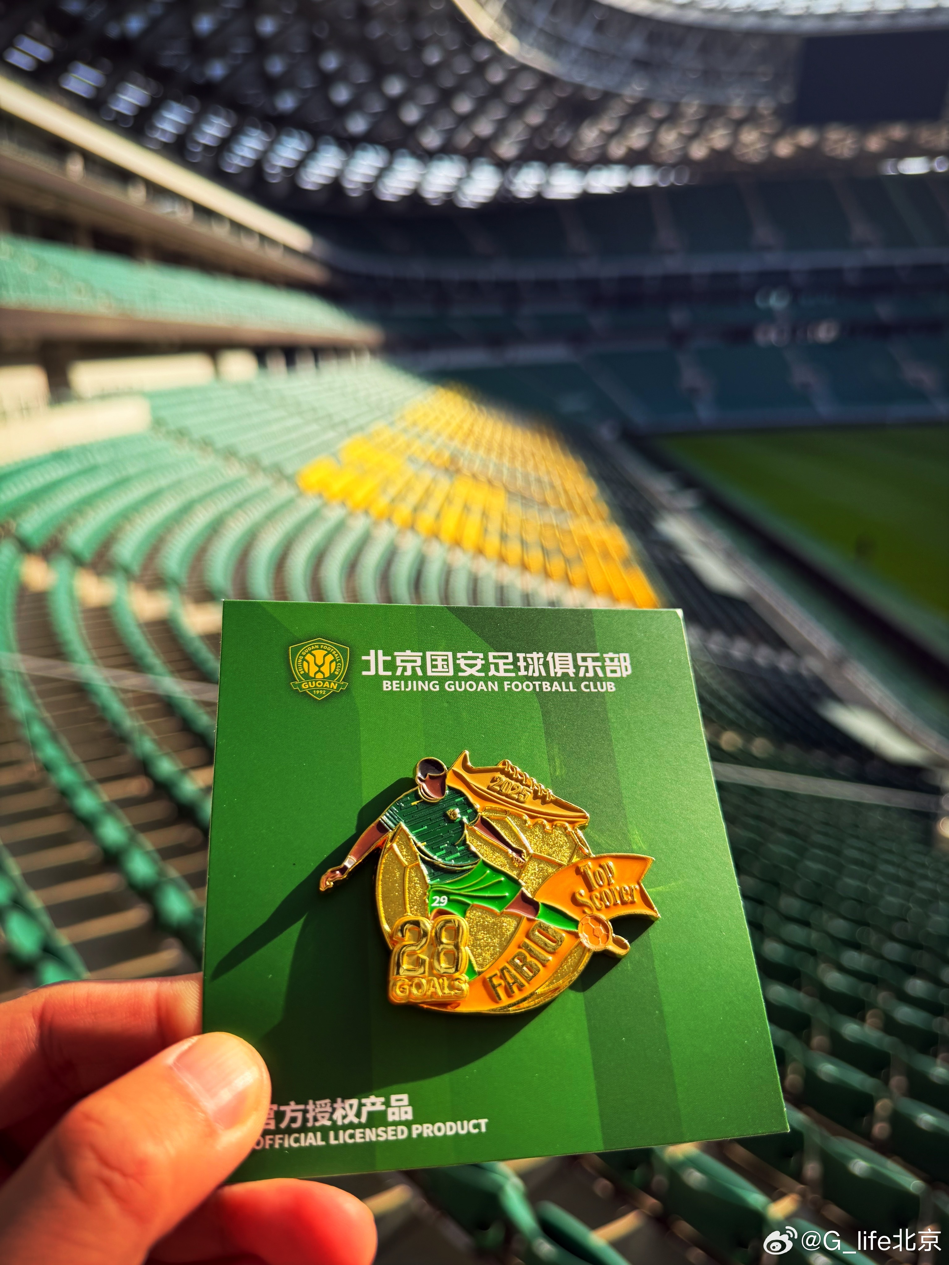 比赛日 法比奥 25最佳射手徽章发售地点:世茂工三一层孚德足球ip店 及工体内场环廊2号门(原京东店现国安旗舰店)111看台斜对面发售,数量有限。北京国安