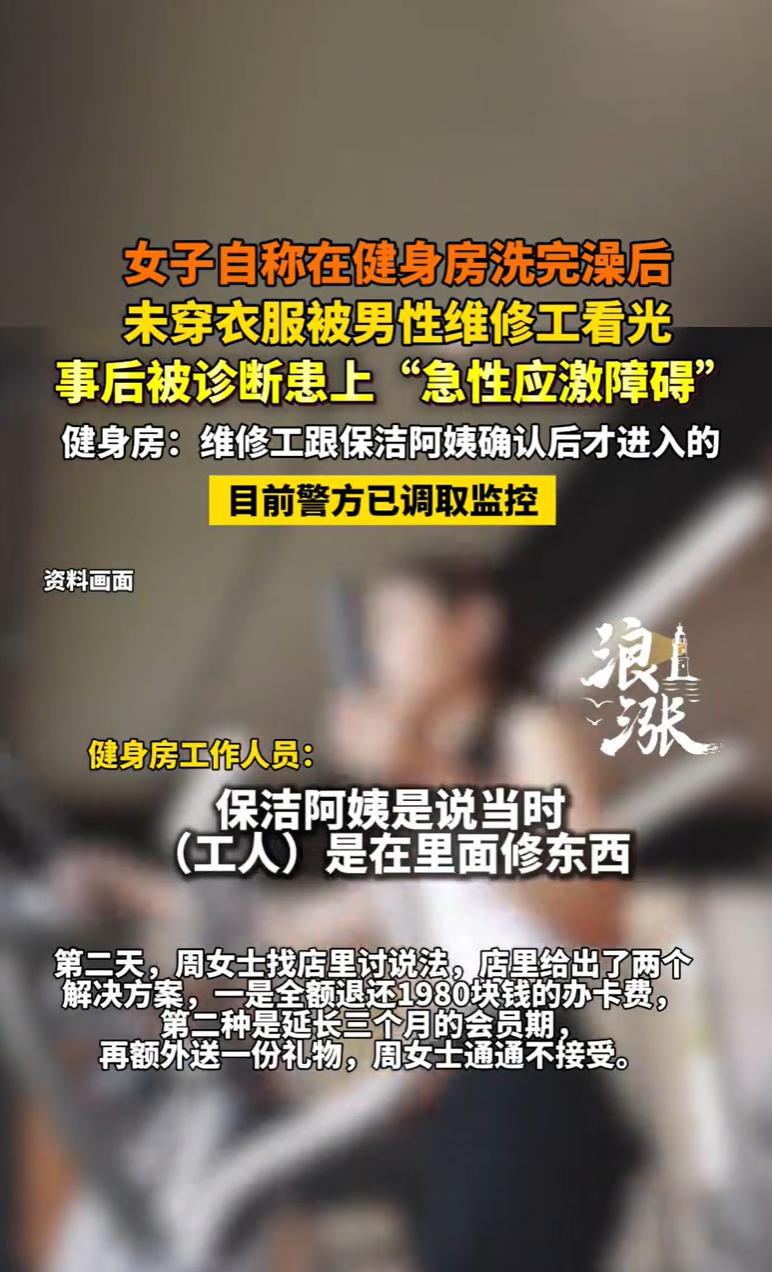 浙江嘉兴,一女子在健身房刚洗完澡,一丝不挂地走出淋浴间,迎面撞上一个陌生男人。对方穿着黑衣浅裤,是来修管道的。女子当场崩溃,事后被诊断为“急性应激障碍”。女子找健身房要说法,对方提出退卡或延期加礼物,她没接受。更让她崩溃的是,健身房后来改了口,说保洁阿姨当时“看着门”,工人没看见她。 据悉,周女士一家健身中心的会员,基本每天回去健身锻炼,一般在晚上八点左右结束了。 2026年3月5日,周女士结束健身后,走进健身房配套的女更衣室,准备冲个澡然后回家。 周女士洗完澡后,身上什么都没穿,打算直接去更衣室旁边的女卫生间上个厕所,然后再回来穿衣服。 在她看来,女更衣室和女卫生间相连,是百分百的女性私密空间,不会有任何问题。 然而,当她从淋浴区推门出来,准备穿过更衣区走向卫生间时,一个陌生的男人,出现在了她的视野里。 这个男人穿着黑色的上衣和浅色的裤子,手里似乎拿着什么工具,正站在女更衣室通往卫生间的过道附近。 那一刻,周女士感觉时间都凝固了,那个男人显然也看到了她,四目相对,短暂的几秒仿佛一个世纪。 周女士下意识地尖叫一声,用双手抱住自己的身体,但为时已晚。 那个男人也显得有些慌乱,很快转身离开。 周女士浑身发抖,大脑一片空白地退回淋浴区,过了好一会儿才缓过神来,用颤抖的手胡乱穿上衣服。 缓过神来的周女士第一时间去找健身中心的工作人员理论,质问为什么女更衣室这种绝对私密的空间里,会出现一个男人,她需要得到一个合理的解释。 经过与前台和一位男性工作人员的初步沟通,她拼凑出了一个令她更加难以接受的“真相”。 原来,当天晚上,女厕所的管道出了故障,需要维修。 而那个出现在女更衣室的男人,正是健身中心找来的一位男性维修工。 周女士无法接受,女厕所的管道坏了需要维修,这完全可以理解,但问题是,为什么维修工作不能在健身中心闭馆后或者提前清场。 3月6日,周女士强忍着羞耻和愤怒,再次来到健身中心,希望为自己讨一个说法。 她认为,这件事不仅仅是“被看一眼”那么简单,健身房的责任少不了。 健身中心方面给出了退办卡费用或延长会员期加礼物补偿两个方案。 在周女士看来,这两个方案都显得苍白无力,甚至有些可笑。 双方不欢而散。 周女士感觉自己的诉求被忽视,强调要求当时第一时间处理此事的那位男性工作人员,必须当面口头向她道歉,且给予她相应的经济赔偿。 协商失败后,周女士开始失眠,整夜整夜地睡不着觉,一闭上眼睛,脑海里就会浮现出那天晚上在更衣室被陌生男人看见的场景。 她开始吃不下东西,精神高度紧张,总是疑神疑鬼,对周围的环境充满警觉,甚至不敢再去任何公共的健身房或浴室。 在医院,经过详细的问诊和评估,医生给出了一个初步诊断:急性应激障碍。 随着事件的发酵,健身中心方面称,结合一位保洁阿姨的口述,强调事发当时其他员工都不在现场。 而当事维修工人自己也声称,他当时并没有看到周女士。 然而,周女士坚称自己与维修工在女更衣室“面对面”遭遇,并被对方看光。 有人说,咱们先别急着下结论,这事有点蹊跷。健身房里那么多人,保洁阿姨也说了她看着门呢,工人进去的时候没人,出来之后周女士才去的。有没有可能当时光线暗,周女士看错了人? 更有人说,说实话,公共更衣室,洗完澡好歹围个浴巾再出来吧?这是基本的自我保护意识啊。自己不防范,出了事全赖健身房,这道理也说不太通吧? 从法律角度,周女士要想讨要说法,关键是提供证据证实所述事实真实发生了。 《民事诉讼法》第六十七条规定,当事人对自己提出的主张,有责任提供证据。 《民诉法司法解释》第一百零八条第一款的规定,对负有举证证明责任的当事人提供的证据,人民法院经审查并结合相关事实,确信待证事实的存在具有高度可能性的,应当认定该事实存在。 具体到本案,周女士主张自己的隐私等合法权益被侵害,理应对维修工及健身中心有侵权事实等要件进行举证。 考虑到涉案地点私密空间,大概率没有监控,周女士缺乏直接证据证明侵权事实。 不过,在民事诉讼中,不要求达到刑事诉讼“排除合理怀疑”的证明标准,只要达到高度盖然性标准即可。 就本案而言,周女士可提供以下证据形成证据链:①事发当晚即时向健身房投诉,符合正常应激反应;②次日医院出具的“急性应激障碍”诊断证明,精神损害与事件高度关联;③对维修工衣着、时间、地点的清晰陈述。 而健身房所依赖的保洁阿姨与维修工证言均属利害关系人证言,证明力较弱,且其自认“高峰期不维修”的管理惯例反证其存在过错。 综合来看,周女士的主张获仍有机会获得支持。 不过,考虑到诉讼成本,周女士可以先与健身房及维修工协商处理,协商不成,在诉诸法院。 对此,你怎么看?