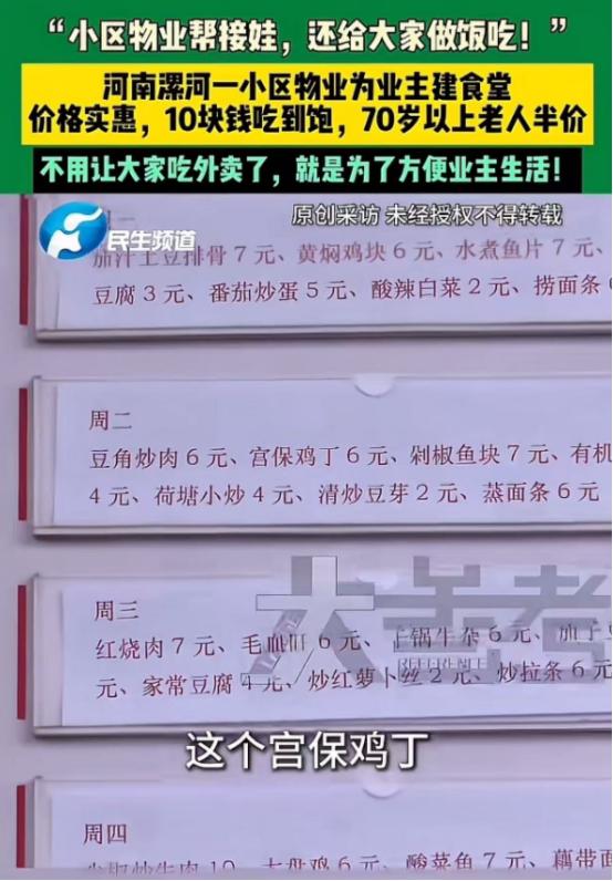 没有对比就没有伤害!河南漯河,一小区物业用了一招,让业主抢着交物业费!网友:如果我家物业也这样,物业费不用催,我不按时交都不好意思! 最近河南漯河有个小区彻底火了,火的不是小区多豪华房价多高,而是物业的操作,让全网业主都直呼羡慕,甚至有人说,要是自己家物业也这样,物业费不用催,自己不按时交都不好意思。 这事可不是瞎传的,实实在在发生在漯河的一个小区里,咱们都知道,现在很多小区的物业和业主,简直就是“死对头”,物业催物业费催得急,业主却躲着不交,为啥? 还不是因为很多物业只收钱不办事,卫生打扫不及时,维修喊半天不来,甚至有的还会用停水停电的方式逼业主交物业费。 但漯河这个小区的物业,偏偏反着来,没花心思跟业主斗智斗勇,反倒把精力都放在了帮业主解决难处上,他们干了两件最实在的事,一下子戳中了业主的心窝子。 首先是免费帮业主接孩子,这一坚持就是五年,小区里不少业主都是双职工,下班时间赶不上孩子放学,请假接娃扣工资,让老人接又不放心,这事成了很多家庭的难题,物业看在眼里,主动组建了护送队,每天到点就准时去学校门口等孩子。 低年级的孩子,工作人员就牵着手往回带;高年级的,就排好队领着走,赶上冬天黑得早、夏天雨来得急,物业还会专门开车去接,生怕孩子冻着淋着,孩子们接回来后,物业还专门腾出地方,让他们在那里写作业,等着家长下班来“认领”。 除了接娃,物业还办了个业主大食堂,更是贴心到骨子里,现在年轻人下班都累得不想动,点外卖不卫生还贵,自己做饭又嫌麻烦,物业就把小区闲置场地利用起来,开了个透明厨房的食堂,菜价实惠得很。 素菜两三块,荤菜六七块,十块钱就能吃到饱,70岁以上的老人还能享半价,晚上饭点一到,食堂里热气腾腾,业主们下了班就能吃上热乎又干净的饭,心里能不暖吗? 说白了,业主不是不愿意交物业费,是怕交了钱换不来实在的服务,这个小区的物业,没喊什么漂亮口号,也没搞什么花架子,就是把业主的难处当成了自己的事。 现在这个小区,物业费收缴率高得离谱,业主们都是主动去交,有的还提前预缴,压根不用物业催,反观很多其他小区,物业整天琢磨怎么催费,却忘了物业服务的本质是什么,其实业主和物业之间,从来都不是对立的,你真心实意帮业主办事,业主自然愿意心甘情愿交钱。 网友们看完都炸了,纷纷留言说羡慕,盼着自己家物业也能学学,其实这事一点都不复杂,物业和业主,说到底就是互相体谅互相配合。 漯河这个小区的物业,用实际行动证明,只要把服务做到位,物业费根本不用催,希望更多物业能看懂这个道理,少点套路,多点真诚,毕竟人心都是肉长的,你对业主好,业主自然会用行动回应。