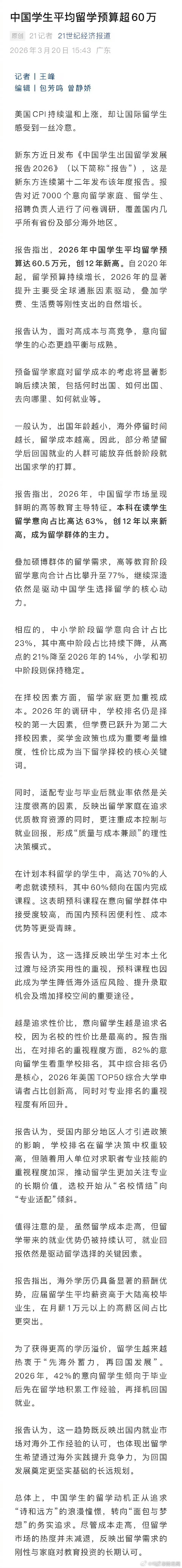 中国学生平均留学预算超60万元这是平均数,去“发达”的美国读本科,60万/年是打