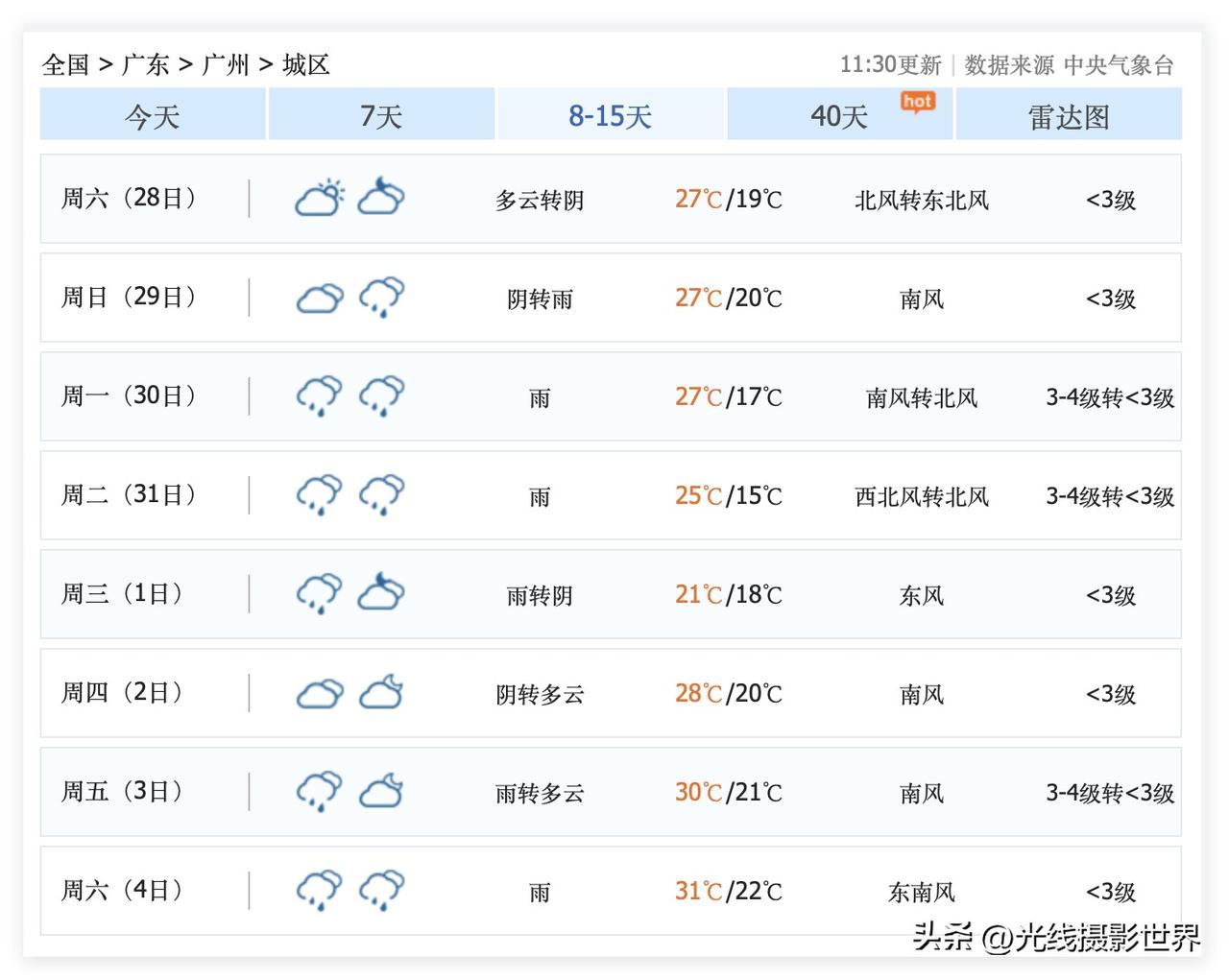 尽管今天广东省广州市降雨降温,但是,广州人的空调制冷功能,估计很快就要开启啦!31度高温闷热的公寓楼写字楼,即将迎来电费飙升的夏季……中央气象台最新天气预报显示,3月25日到27日,广州最高气温30度到31度…… 对于通风不好的房屋来说,如果再遇到空气稍微潮湿,那就是必须开空调! 对于西晒房来说,下午的时候,如果不想开空调,那就只能……去图书馆、博物馆或者商场…… 3月27日,星期五,广州多云,最高气温31度。 …… 再然后就是4月……清明节后,估计广州大多数人的空调都会一直开到国庆节结束吧?! 清明节到国庆节……广州的空调……尤其是通风不好的房屋和西晒房…… 广州,最美好的季节就是冬季和春季……11月到2月……嗯,春季有回南天也不好…… 好吧,接下来,4月到10月中旬,除了去海边玩,基本上,广东不是那么的适合旅游……尤其是对于我这种人来说,我更喜欢11月到2月去广东旅游……
