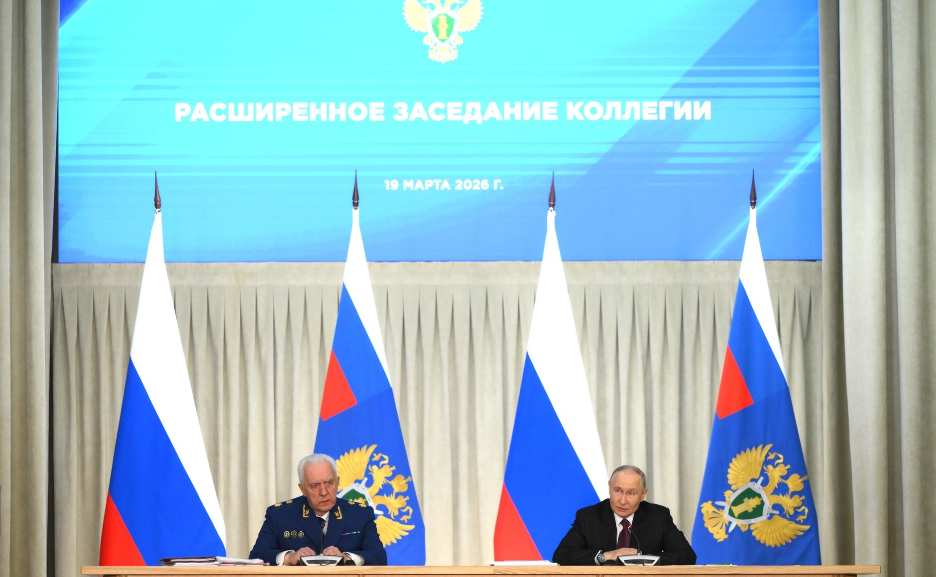 总统在俄罗斯联邦总检察院扩大部务会议上发表讲话。