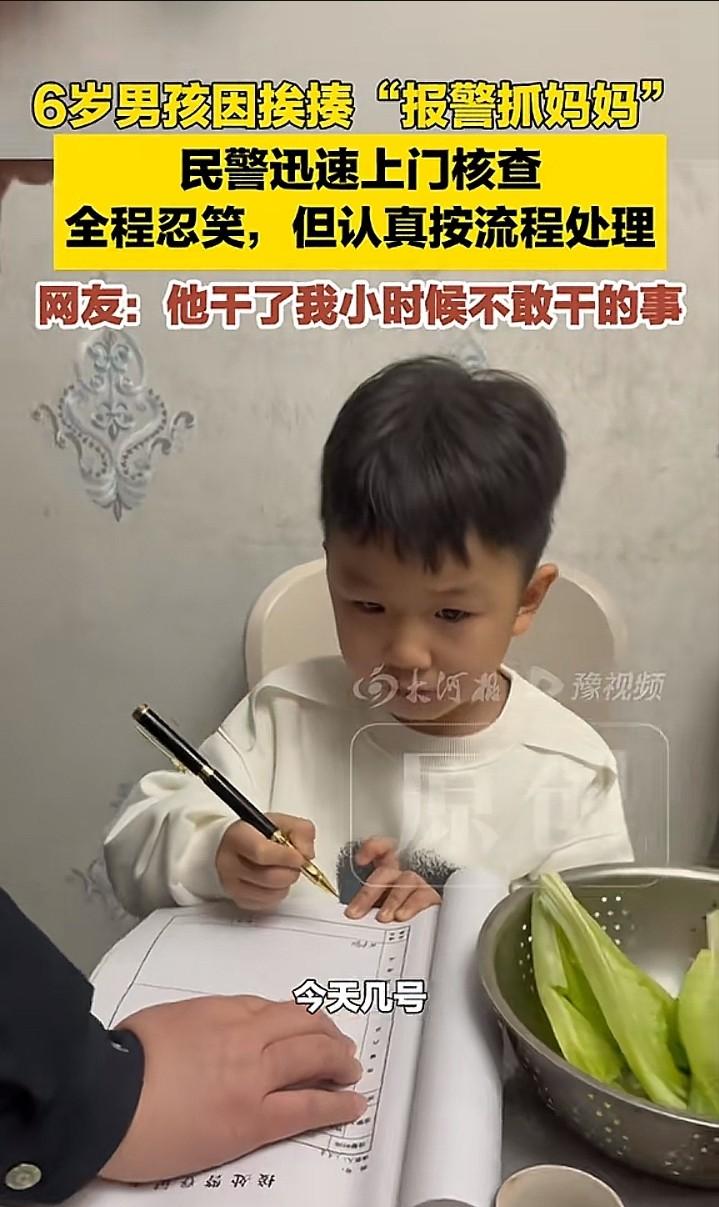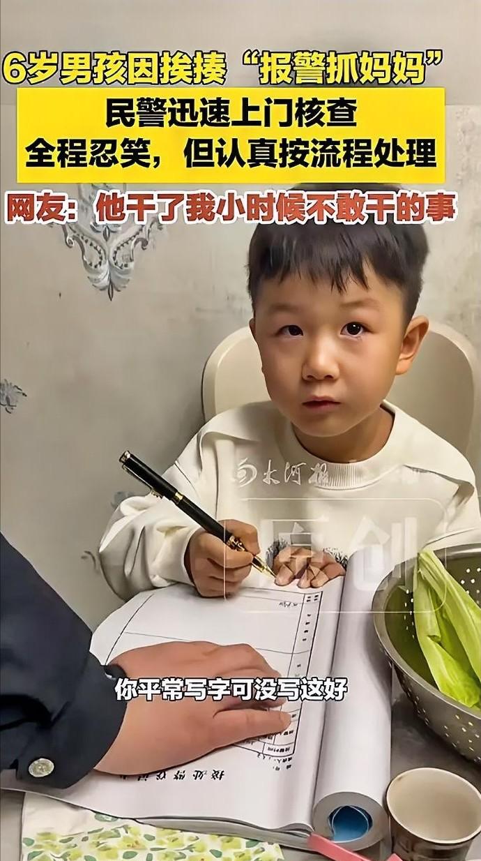胆子太大了!河南,6岁男孩因调皮被妈妈打了一顿,谁知,他竟做了一件让妈妈刮目相看的事情。没一会儿,就有人来敲门,妈妈看到进门的人后,也瞬间乐开了花。 “喂,110吗?我妈妈在家打人,你们赶紧过来抓她!”当听筒里传出这句奶气十足的控诉时,接线员大概率在电话那头愣了半秒。 事情发生在河南。一个刚踏入小学大门的六岁男孩,因为放学回家到底该先骑车还是先动笔写作业,和亲妈展开了一场激烈的拉锯战。 谈判破裂,大人的耐心彻底告罄。随着巴掌清脆地落下,这场原本普通的家庭内部矛盾,瞬间跃升成了让人哭笑不得的“治安事件”。 委屈到当场炸毛的小家伙,做出了个让成年人都惊掉下巴的动作。他趁大人不注意直接钻进卧室,熟练反锁房门,拿起手机就按下了那三个关键数字。 最充满戏剧张力的是,这套遇事立刻找警察求助的标准动作,恰恰是他老妈平日里反复灌输的。这到底算是家庭教育的成功,还是意外反噬? 当妈的站在门外压根没当真。在她固有的认知里,一个六岁娃娃挨顿揍后的报警,纯粹是无能狂怒,哪会有警车真的为了这种鸡毛蒜皮跑一趟? 可现实偏偏不按套路出牌。没过几分钟门铃骤响,四位身穿制服的民警齐刷刷站在家门口,稳稳地接住了这通看似荒诞的“错误投诉”。 听完出警原因,四位硬汉估计都在心里疯狂掐大腿憋笑。但你猜怎么着?人家压根没把这当成一场闹剧,更没有随便糊弄两句就转身离开。 所有的办案流程走得一丝不苟。核实双方身份、仔细询问事情经过,甚至让这个小报案人一本正经地做起了笔录,并要求在末尾签上大名。 据说在那张严肃的笔录纸上,小家伙的字迹写得比平时赶作业还要工整漂亮。这哪里是在记录案情,这分明是在行使一个公民最基本的求助权利。 年龄从来都不应该成为权利的盲区。带队民警那句“孩童报警同样得当回事”,直接把这场家庭闹剧拉高到了现代法治启蒙的维度。 如果警察一进门就打着哈哈和稀泥,或者严厉批评孩子胡闹浪费警力,那颗刚刚萌芽的规则意识种子,多半当场就被粗暴地连根拔起了。 但当庞大的执法机器在这个普通的家庭客厅里,展现出它极其温情又严谨的一面时,奇妙的化学反应就这样水到渠成地发生了。 看着警察叔叔们如此郑重其事,原本满肚子怨气的男孩反倒局促起来。他猛然意识到占用公共资源绝非儿戏,立刻收起了之前那副气鼓鼓的姿态。 僵持的冰川瞬间消融。孩子主动低头为自己的小题大做道歉,母亲也顺势反思了武力镇压的越界行为,母子俩在充满戏剧性的调解中握手言和。 民警前脚刚下楼,这小子在屋里独自消化了不到十分钟,推门出来跟没事人一样嚷嚷着肚子饿。干完饭后,老老实实坐回书桌前开始死磕作业。 千万别把这事只当个段子滑过去。那个敢于把亲妈“送”上警车的六岁男孩,其实在给所有自以为是的成年人上了一堂极其深刻的课。 遭遇暴力侵害敢于直接说不,懂得利用合法的社会途径来保卫自己,这份不怯场、不隐忍的硬核底气,是多少成年人活了大半辈子都极度稀缺的东西? 教育的底层逻辑从来不是靠着体力优势去降服,而是建立在平等基础上的博弈与沟通。靠巴掌或许能震慑一时,却绝对养不出一个懂得捍卫自我边界的灵魂。 而那四位耐心陪伴孩子写笔录的民警,更是用一堂最生动鲜活的街头法治课,在这个六岁孩童的心智底座上,深深刻下了对规则的信任与敬畏。 当每一个看似微不足道的微弱呼救,都能在现实中得到如此郑重其事的回声,这个社会的法治安全感,才算是真正落到了实处。 参考信息:中华网.(2026-03-20).6岁男孩挨揍后报警要把妈妈抓走民警上门调解.