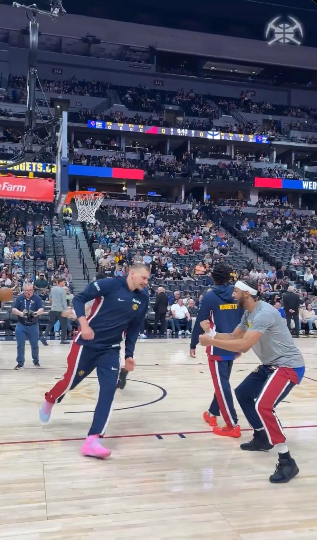 约基奇今日上脚Joker二代粉白鸳鸯配色,还挺显眼的~猛龙VS掘金