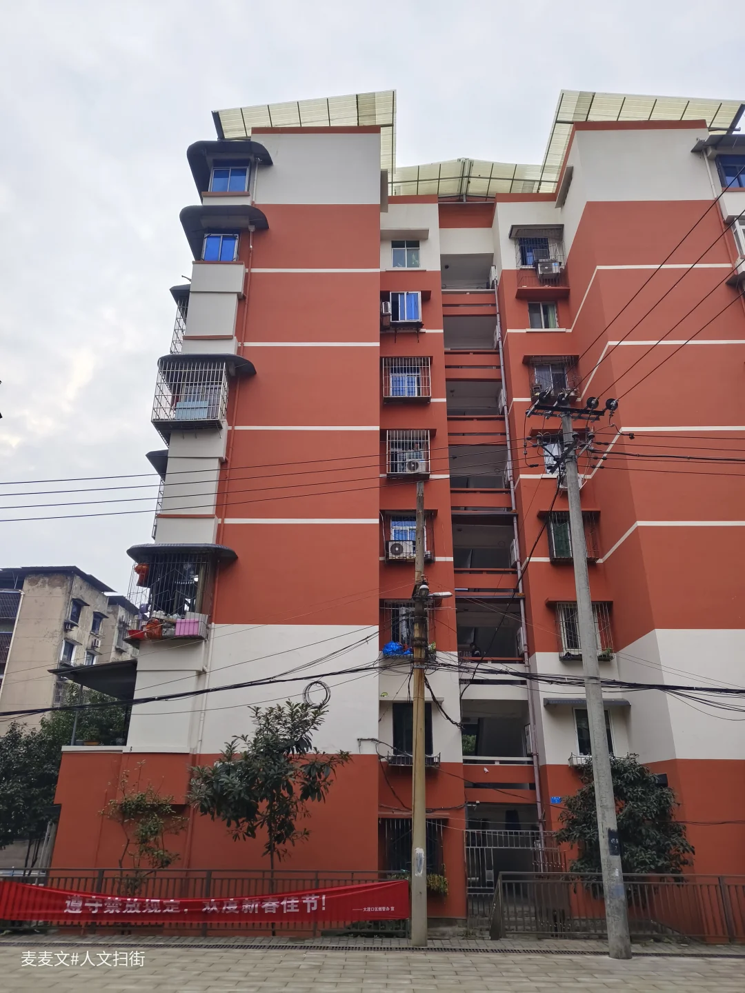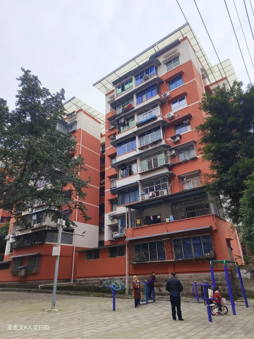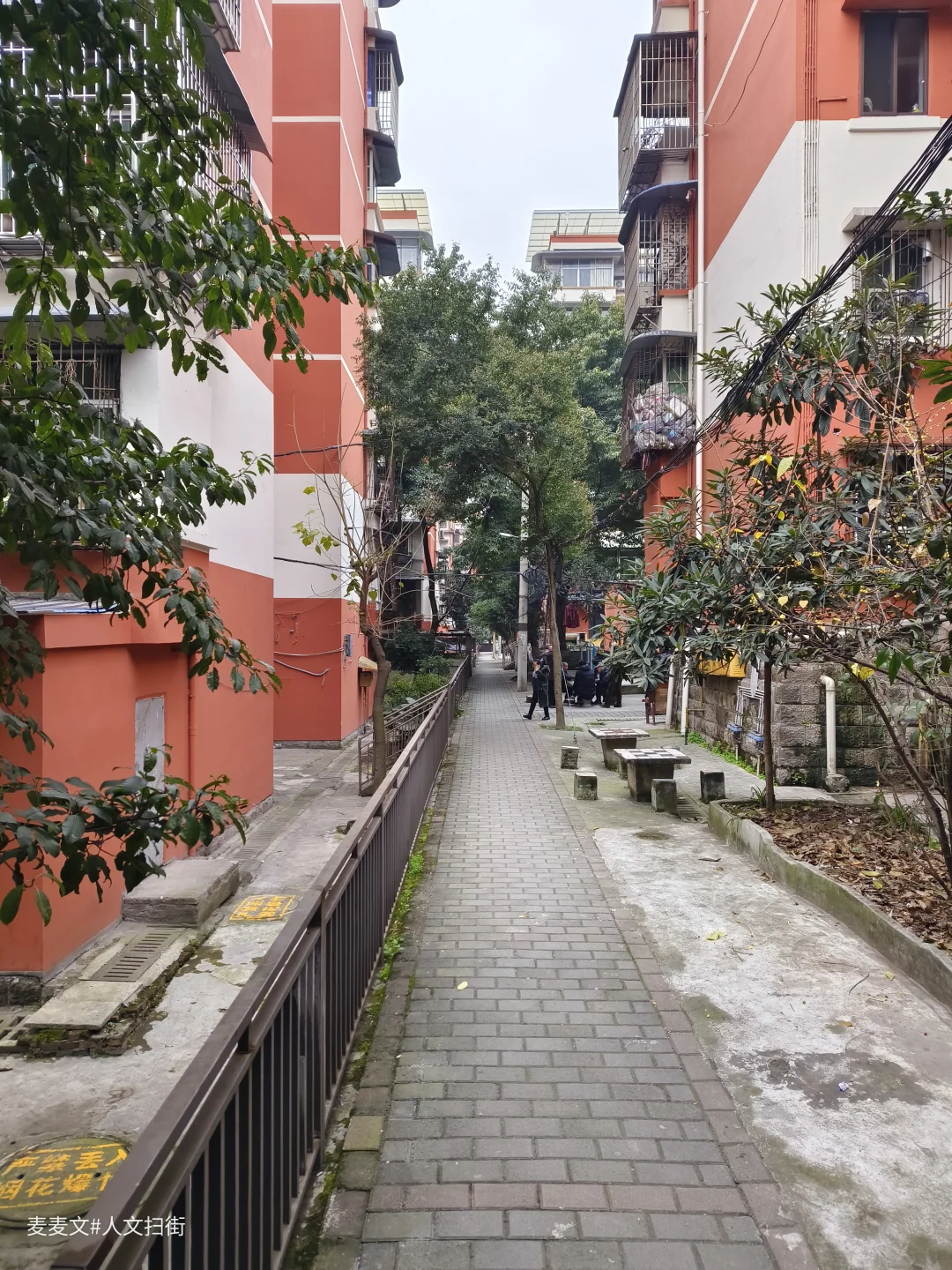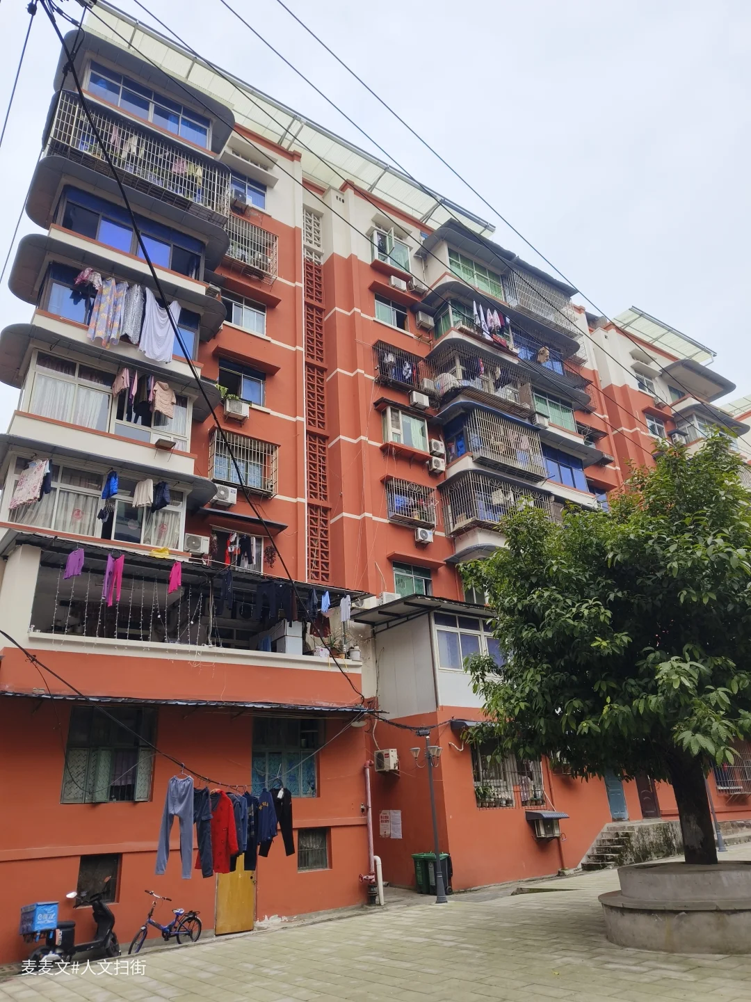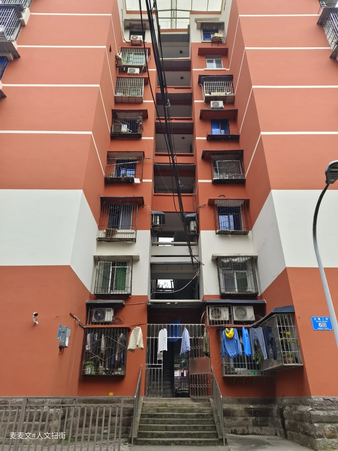 大堰二村,位于重庆市大渡口区跃进村街道,是重钢职工家属区之一。橙红与米白相间的楼栋,是它翻新后的模样。1987年动工、1988年竣工的老房子,外墙刷上新漆,镂空花砖与错落阳台仍保留着80年代的工业质感。 这里是重钢人的生活主场,退休职工们围在院坝里打牌聊天,晾晒的衣物在风中晃荡,满是烟火气。翻新后的路面平整干净,健身器材与绿树点缀其间,却没冲淡老家属院的温情。楼道里的旧门、窗沿的盆栽,都藏着几代人的记忆。