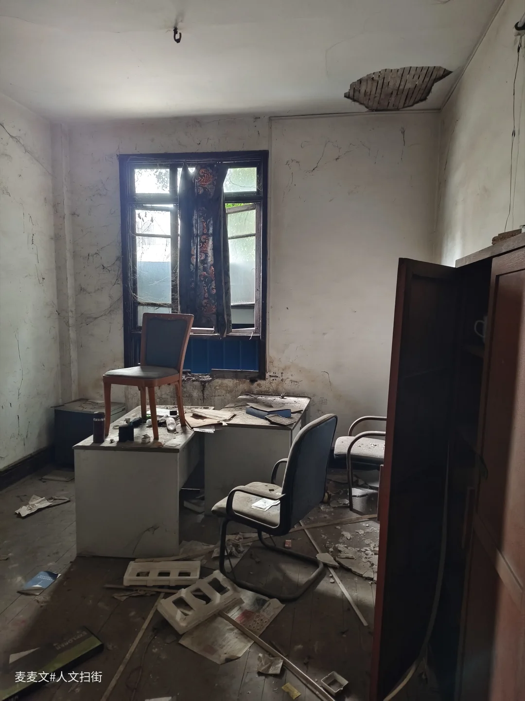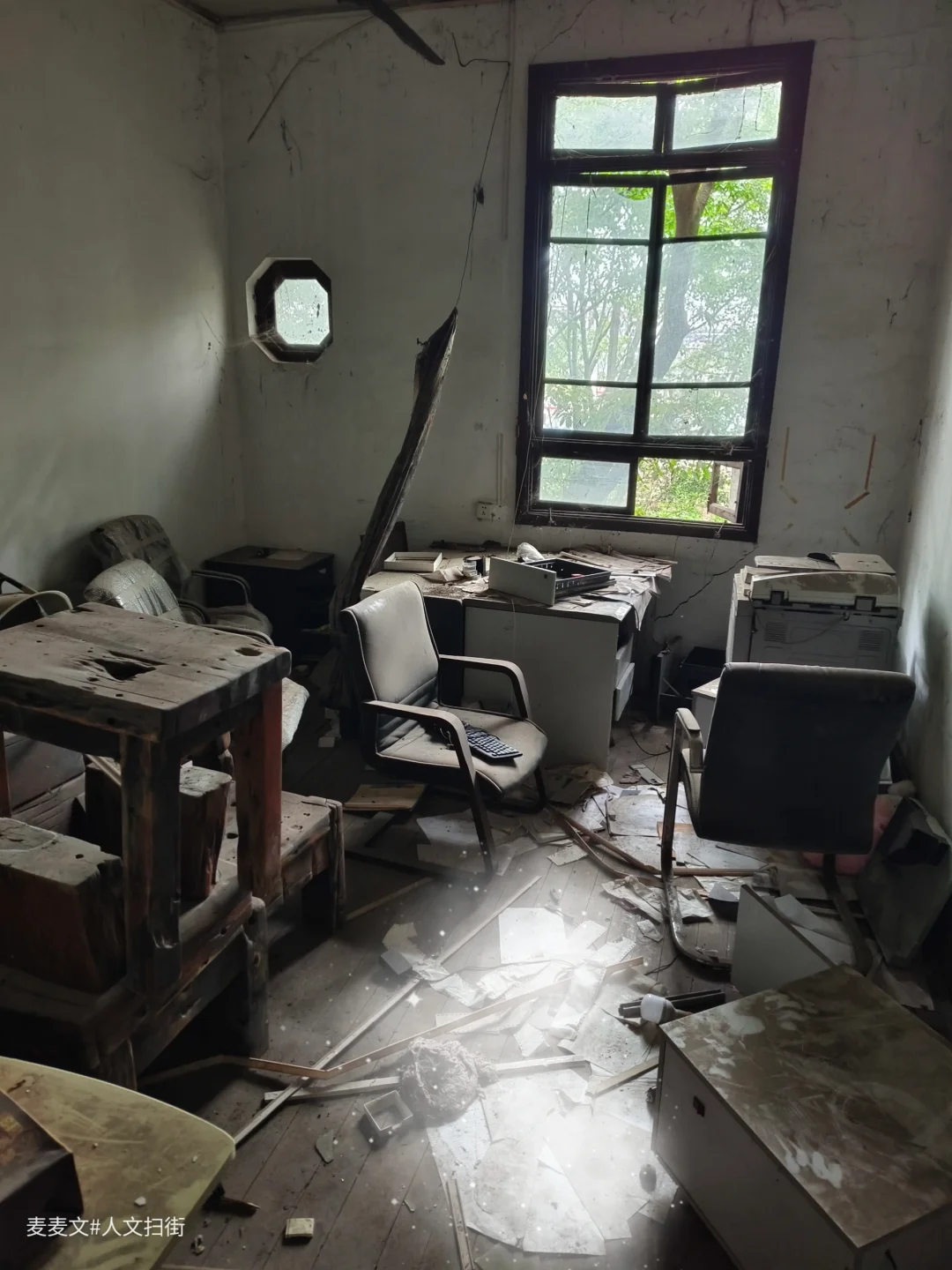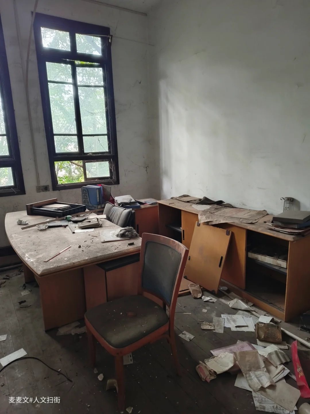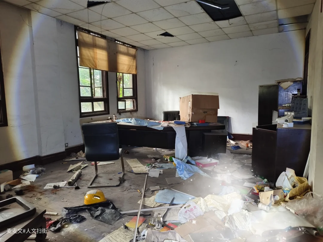 重庆市大渡口区茄子溪街道制材一村的重庆木材综合厂办公楼,是建国早期西南最大木材加工企业的见证。这座建于20世纪50年代的仿苏式砖混建筑,中轴对称、横向三段式布局,八角窗与斑驳外墙写满岁月痕迹。 它曾是指挥生产的核心,见证过“山城牌”纤维板的辉煌,也藏着军工生产的往事。如今楼内散落着旧办公桌椅、泛黄的家具照片与老式电话,空荡走廊里只剩落叶与时光低语。作为市级优秀历史建筑与区级文物保护单位,它静静伫立,封存着重庆工业的滚烫记忆。