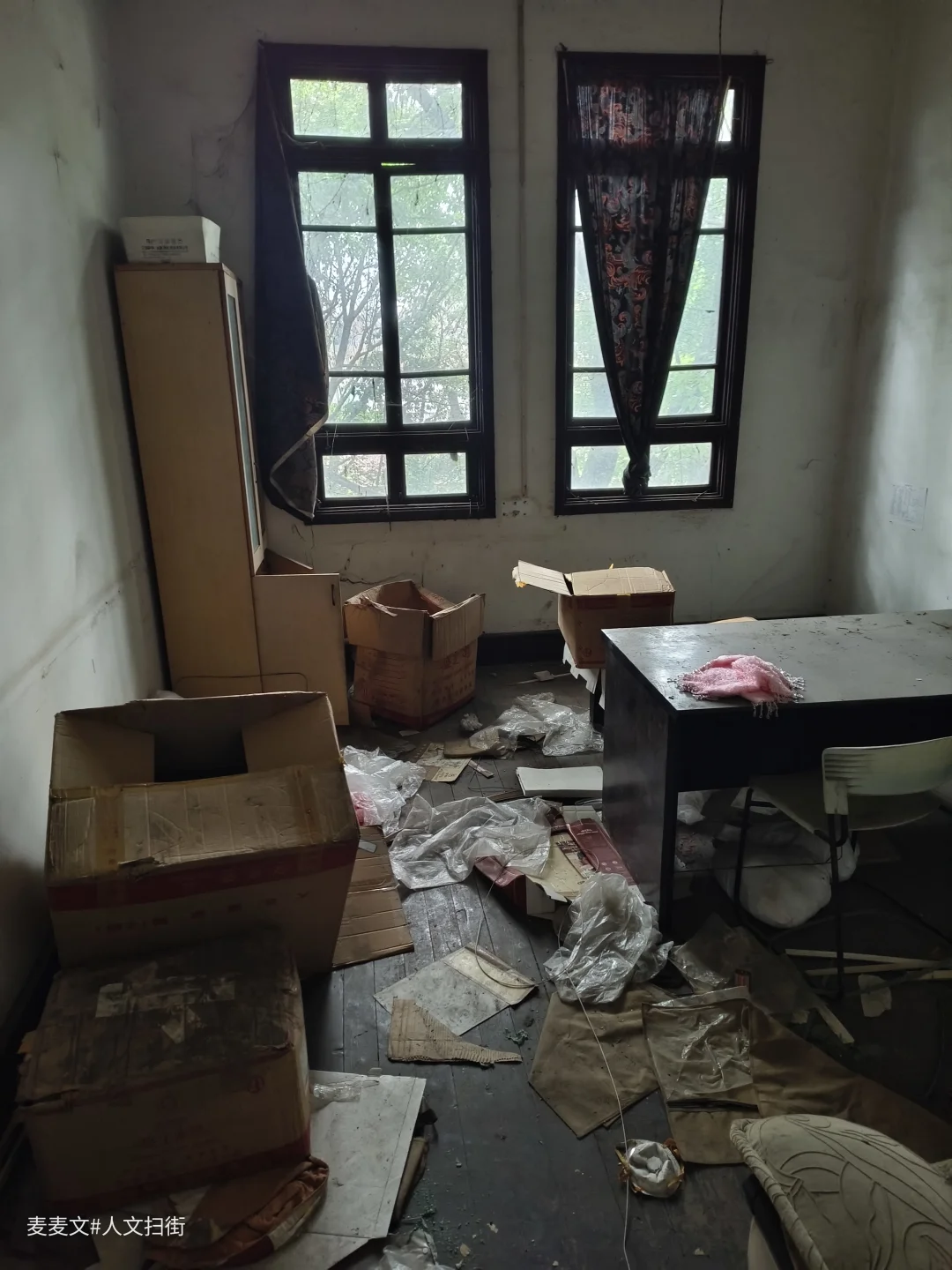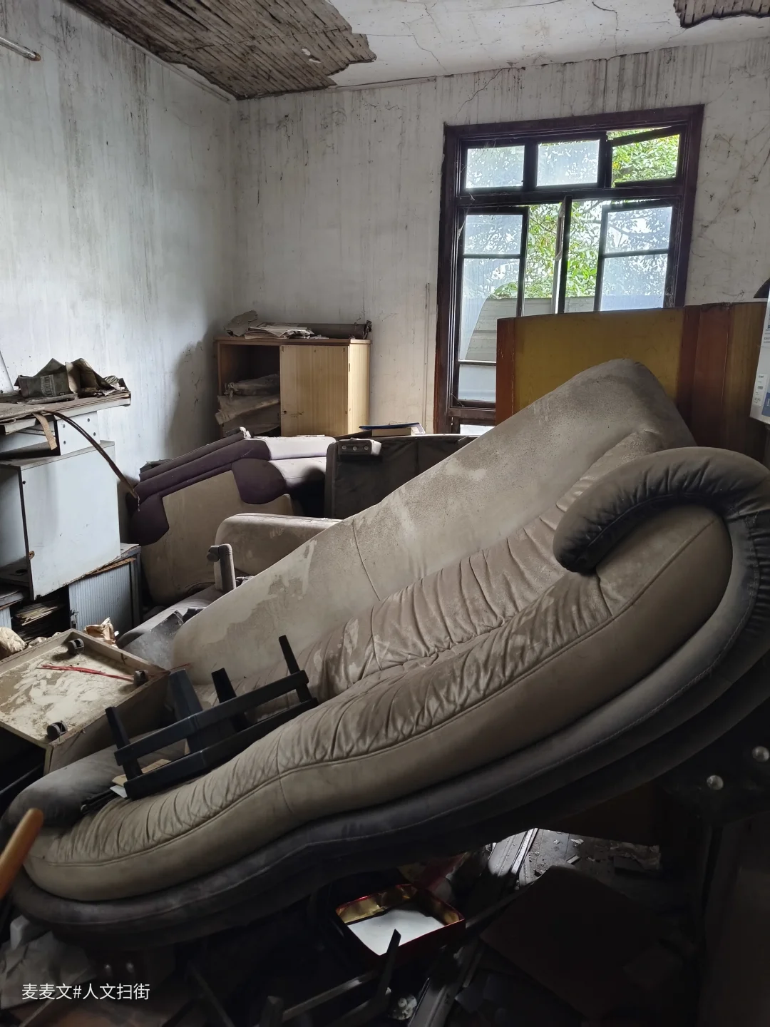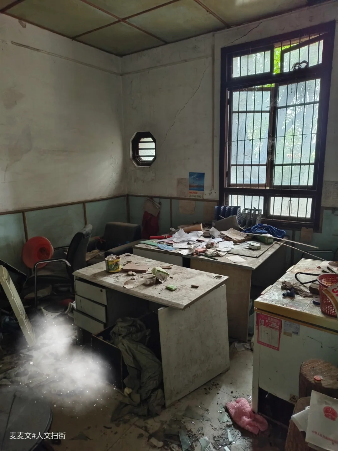 重庆市大渡口区茄子溪街道制材一村的重庆木材综合厂办公楼,是建国早期西南最大木材加工企业的见证。这座建于20世纪50年代的仿苏式砖混建筑,中轴对称、横向三段式布局,八角窗与斑驳外墙写满岁月痕迹。 它曾是指挥生产的核心,见证过“山城牌”纤维板的辉煌,也藏着军工生产的往事。如今楼内散落着旧办公桌椅、泛黄的家具照片与老式电话,空荡走廊里只剩落叶与时光低语。作为市级优秀历史建筑与区级文物保护单位,它静静伫立,封存着重庆工业的滚烫记忆。