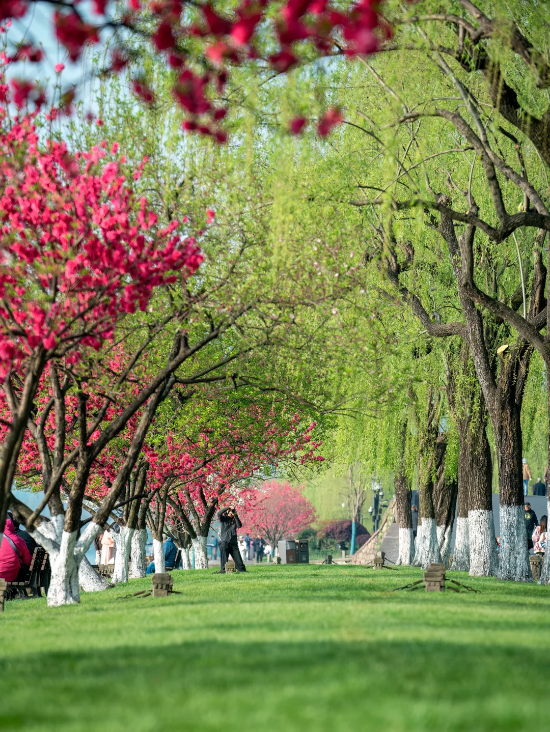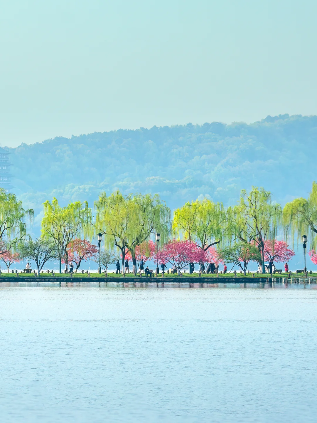 杭州西湖|白堤的桃红柳绿具象化了!!