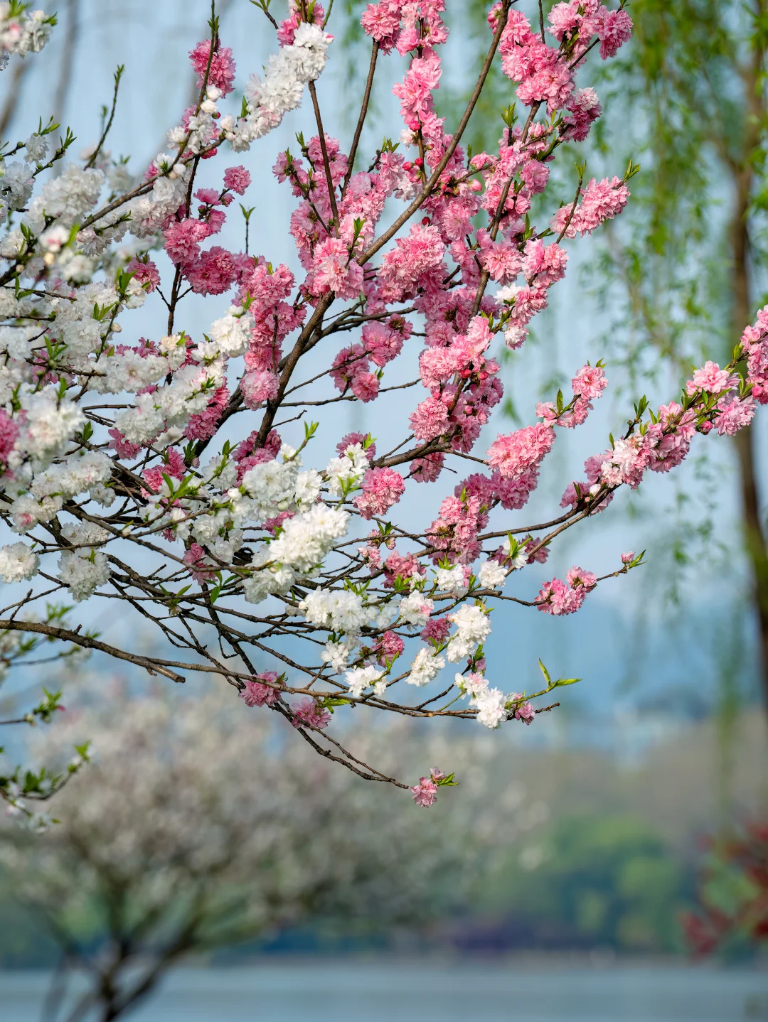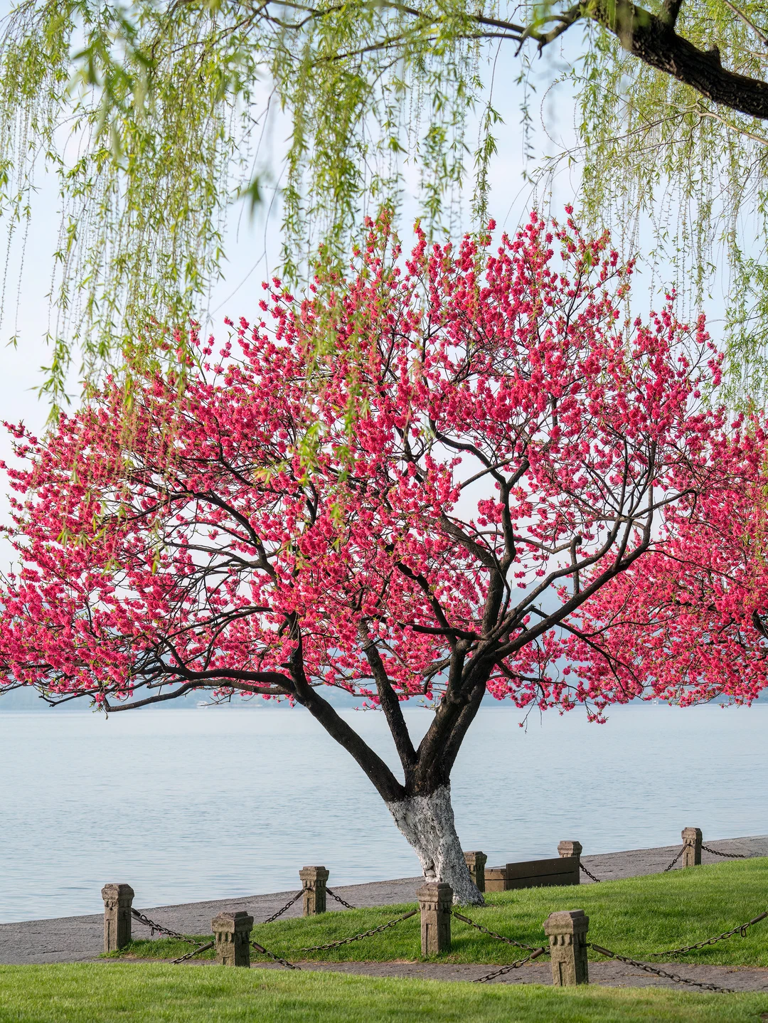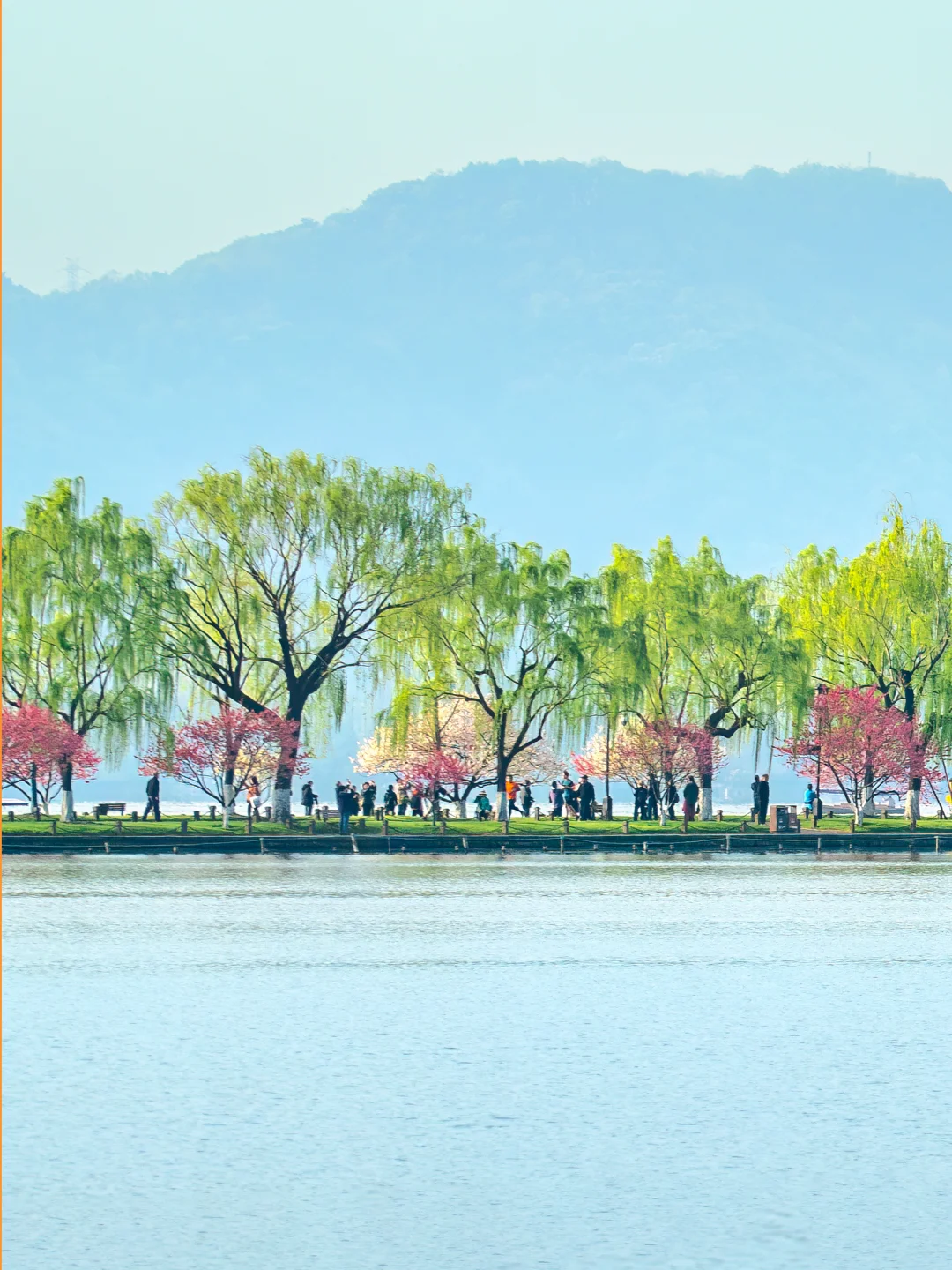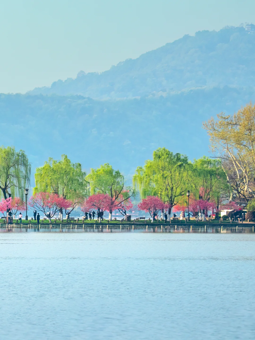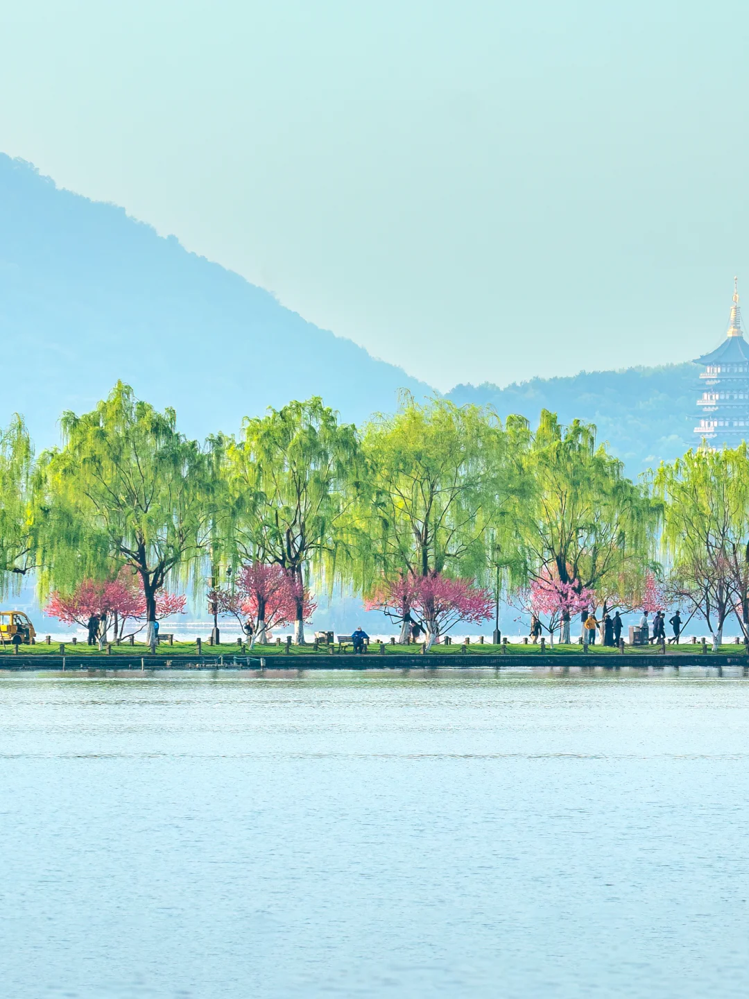杭州西湖的“间株杨柳间株桃” 是我见过最美的春日场景! 嫩绿的柳枝随风摇曳 粉红的桃花肆意绽放 远处的保俶塔、雷峰塔和城隍阁 把西湖点缀成诗画里的江南🍃 - 推荐路线:断桥残雪→白堤→平湖秋月→孤山 全程大概2公里,走走停停拍拍刚刚好 - 📍定位:西湖白堤(断桥入口) 🌸最佳观赏期:3月下旬-4月上旬 🚇交通:地铁1号线凤起路站/龙翔桥站,步行约15分钟 ⏰建议时间:早上7-9点或傍晚4-6点,人少光线好 📸拍照点:北山街看白堤全景,白堤漫步近距离欣赏桃红柳绿 -