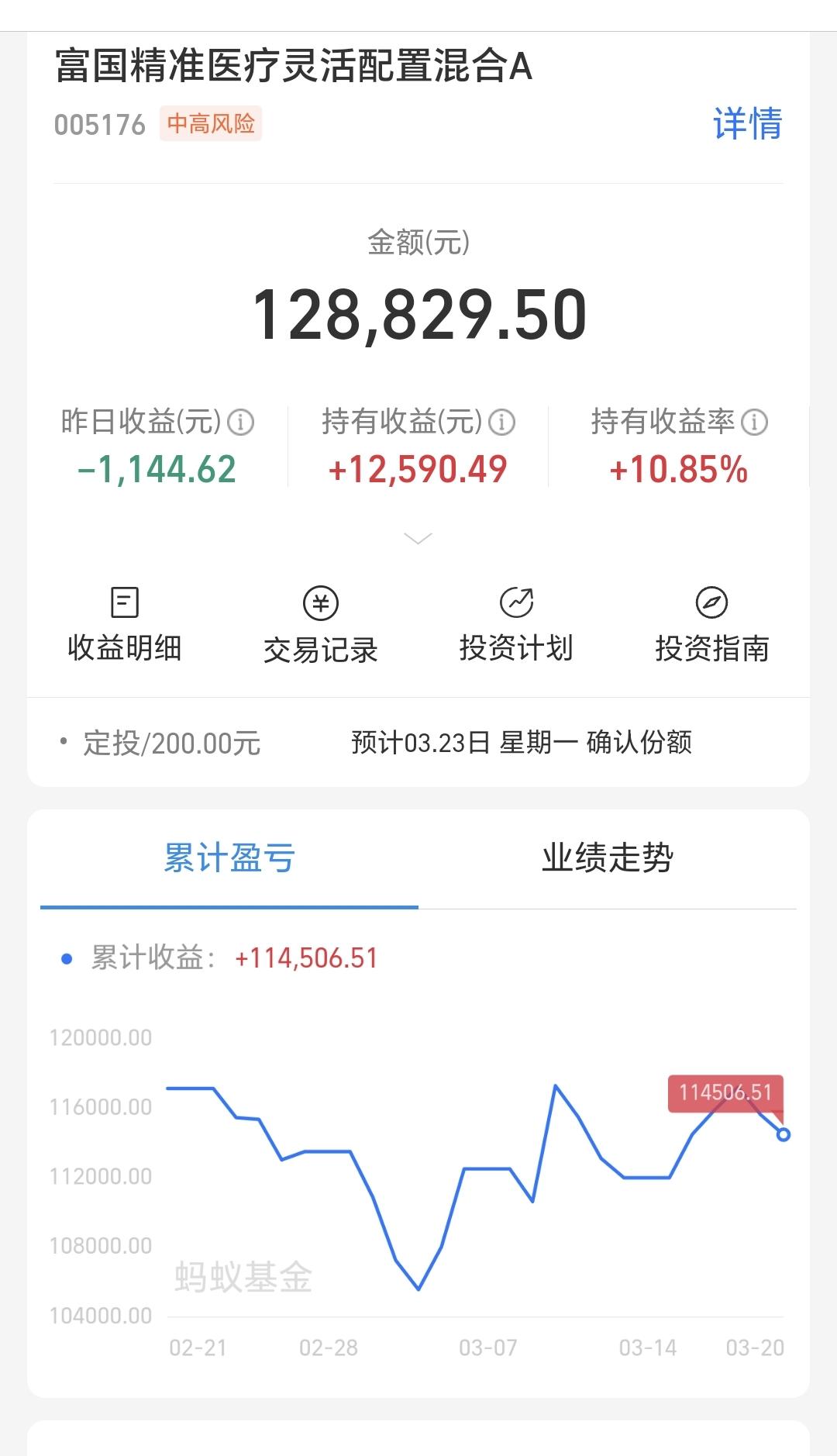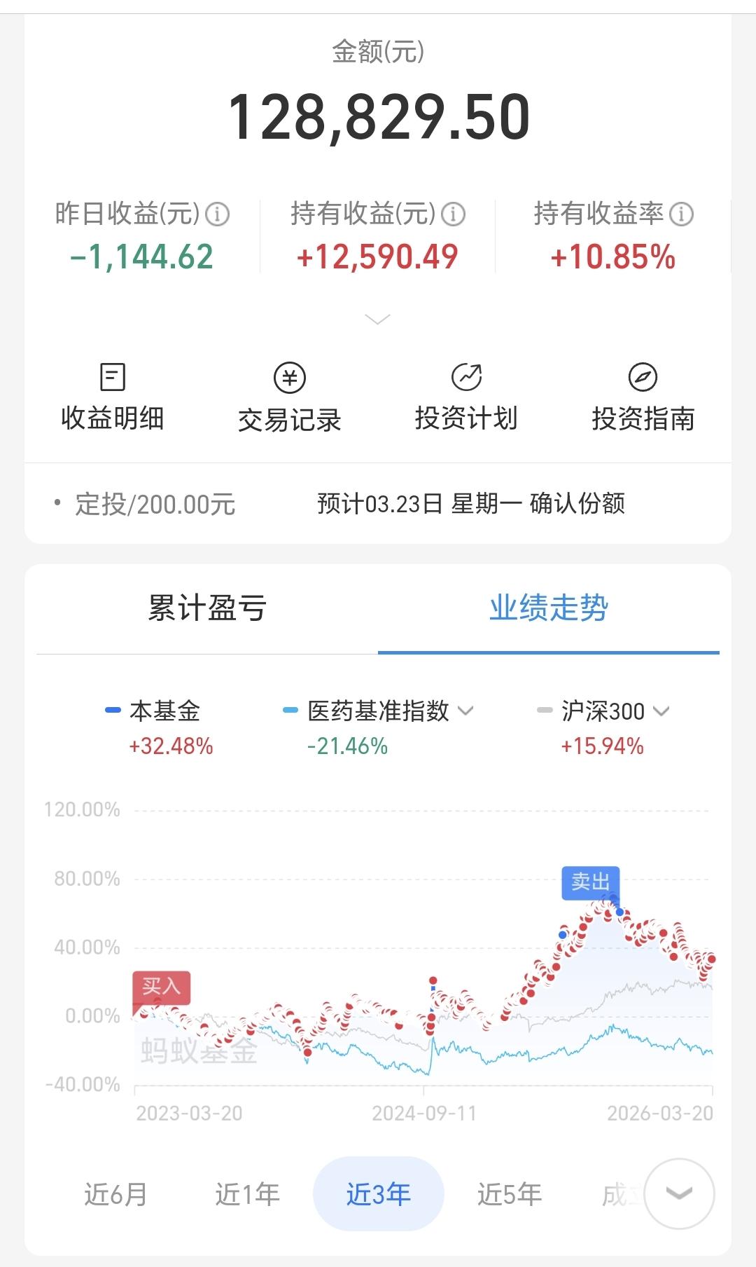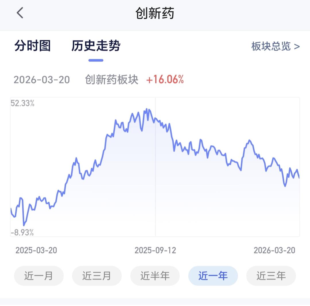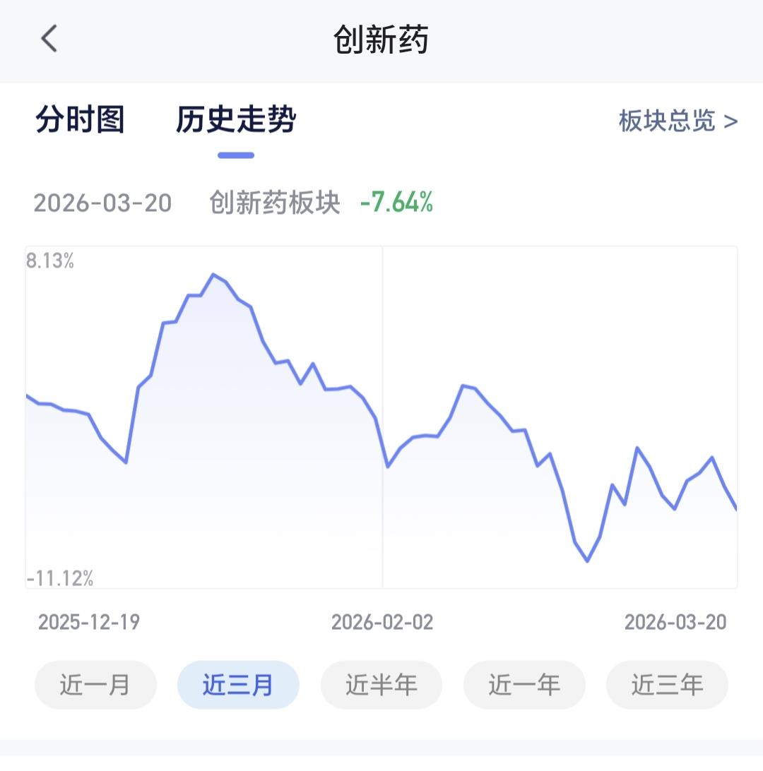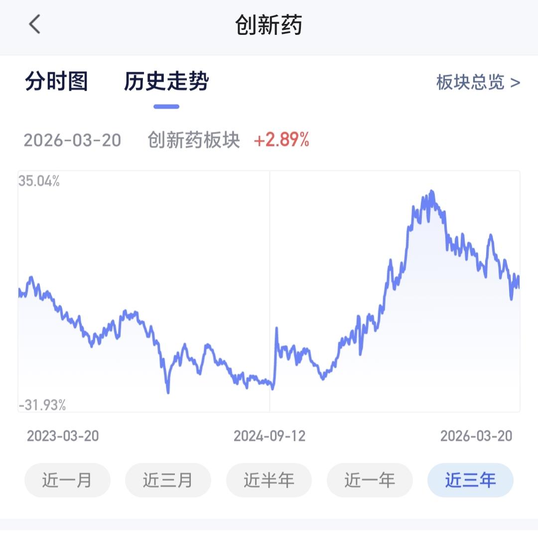 基金:创新药板块是什么情况(周末讲解的板块5) 许多人还在纠结于牛市有没有结束,牛市结束的地方,通常都是人声鼎沸,牛市结束的地方,连菜场的大妈都在谈论股票,牛市结束的时候,办公室里从来没有做过投资的人,也来向你打听股票的事情,这个时候就是人声鼎沸,这里就是牛市结束的方向,到现在为止,没有看到任何的人声鼎沸,牛市已经见顶的言论不可信,相反,越多的人怀疑牛还在不在,牛市就越没有结束。 创新药板块昨天下跌了1.78%,是连续第2个交易日下跌,持有人数在所有板块当中排名第14位。 创新药板块近三个月以来下跌了7.64%,近半年以来下跌了19.10%,近一年以来上涨了16.06%,近三年以来上涨了2.89%,这个板块的基金情况见下面的截图6。 创新药板块日线级别处于短期下跌通道中,前段时间两次突破了这个下跌通道的上轨线,昨天下跌又回到了这个下跌通道内,说明这两次的突破都是假突破。想进场的人需要继续等待,耐心等待有效突破这个下通道上轨线的时候,再考虑要不要进场。 创新药板块周线级别处于上涨通道中,周五收盘的时候来到了上涨通道下轨现场,左侧操作的人可以在这里考虑要不要进场,右侧操作的人可以等待日线级别上涨突破短期下跌通道的上轨线,纠错是有效破位周线级别上涨通道的下轨线。 创新药板块基金我持有128829元,持有收益12590元,持有收益率10.85%,累计收益114506元,每天定投200块钱。 这只基金我前段时间都是每天定投10块钱,前两天刚刚改变为每天定投200块钱,改变的理由就是,现在的位置来到了周线级别上涨通道的下轨线附近,这里上涨的概率比继续下跌的概率大,即使是继续下跌,我也只是在定投,手动进场等待上涨突破日线级别下跌通道的上轨线,到时候再考虑是不是进场。 看下面的截图10,这是我持有创新药基金近三年以来的走势图,从图中可以看出,我在前几年的低位区域一直都在坚持定投,在阶段性上涨之后进行了止盈,这就完美完成了操作的一个过程,在低位区域阶段收集筹码,在高位区域阶段落袋为安,现在是开启了又一轮筹码收集的过程,玩基金就是这么简单,涨多了,考虑落袋为安,跌多了,考虑捞取筹码,如此反复循环之下,你的收益就会越来越多,我的这只基金现在就是这样的,持有金额12万元,累计收益11万元,这只基金持有的12万元里面,只有1万块钱是我真正的本钱,你也可以这样的,只要你在低位区域的时候敢于进,只要你在高位区域的时候舍得出,财富不断增加并不是梦。 我昨天晚上到今天上午,已经讲解了恒生科技板块,CPO板块,白酒板块,AI应用板块,没有看的人可以到前面去翻看一下,现在讲的创新药板块是第5个板块,这两天还会陆陆续续讲解许多板块,有时间的时候大家都可以看一下。 花1秒钟点赞,花30秒钟评论,就是对我最大的支持,谢谢大家的支持。