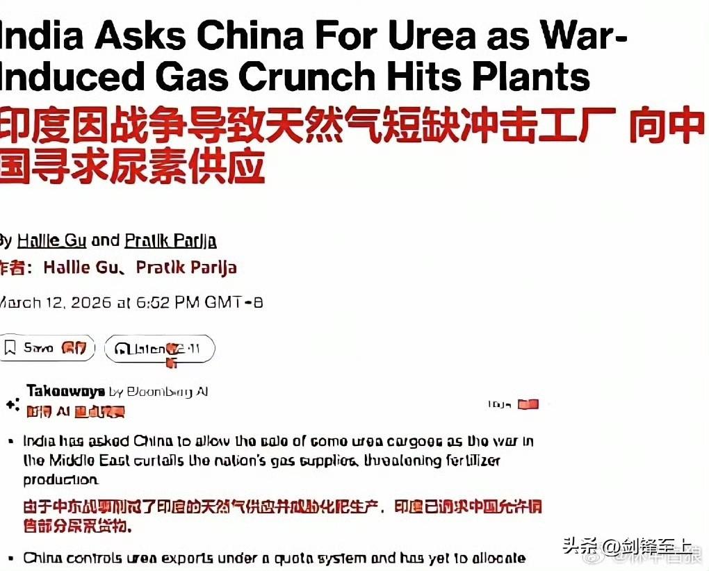 印度人的脑回路你永远看不懂 因为霍尔木兹海峡被封锁,印度国内化肥短缺,然后就想着从中国进口化肥,可是现在中国已经收紧了化肥出口,所以印度不好进口 然后印度来了波神操作,他们不是求中国放开出口,而是要求中国放开出口,听懂了吧?是要求中国放开出口