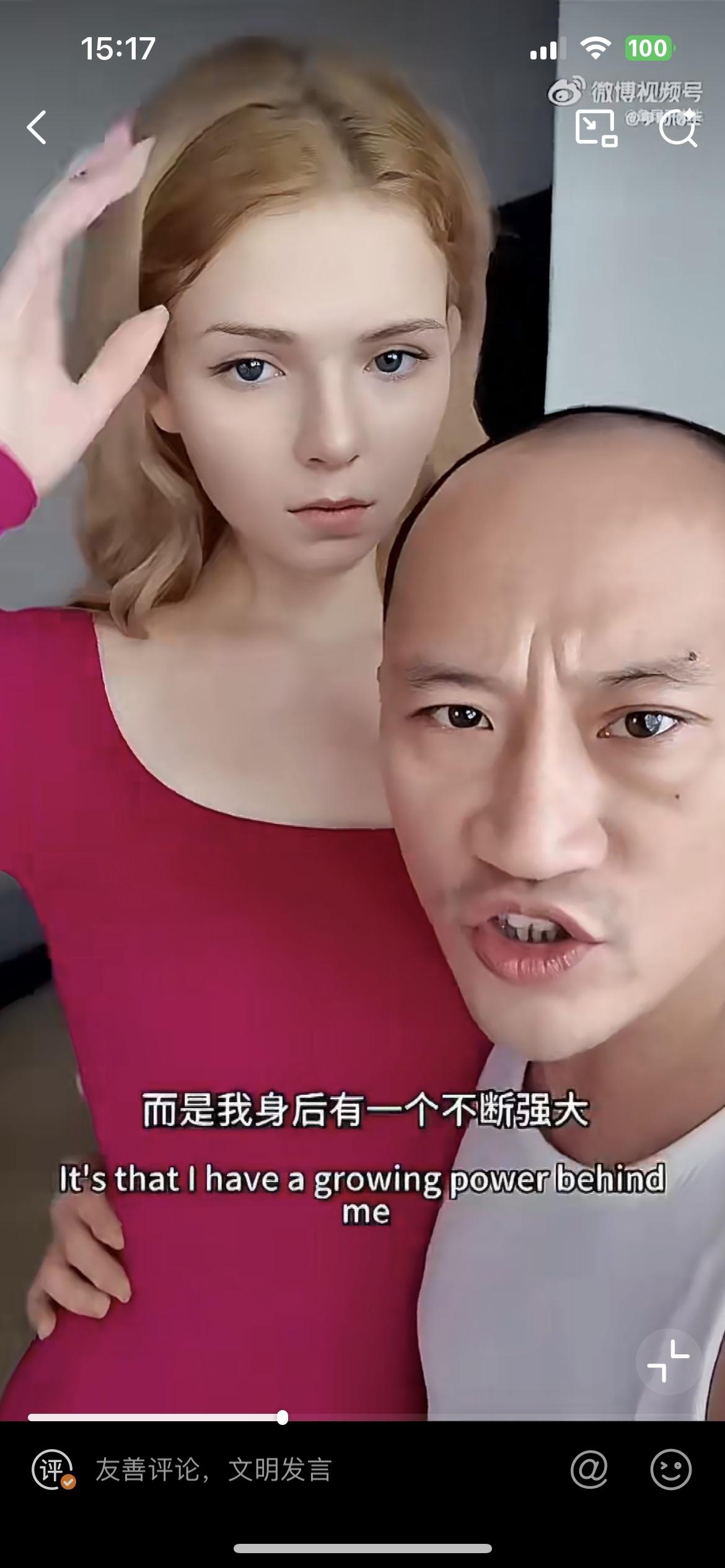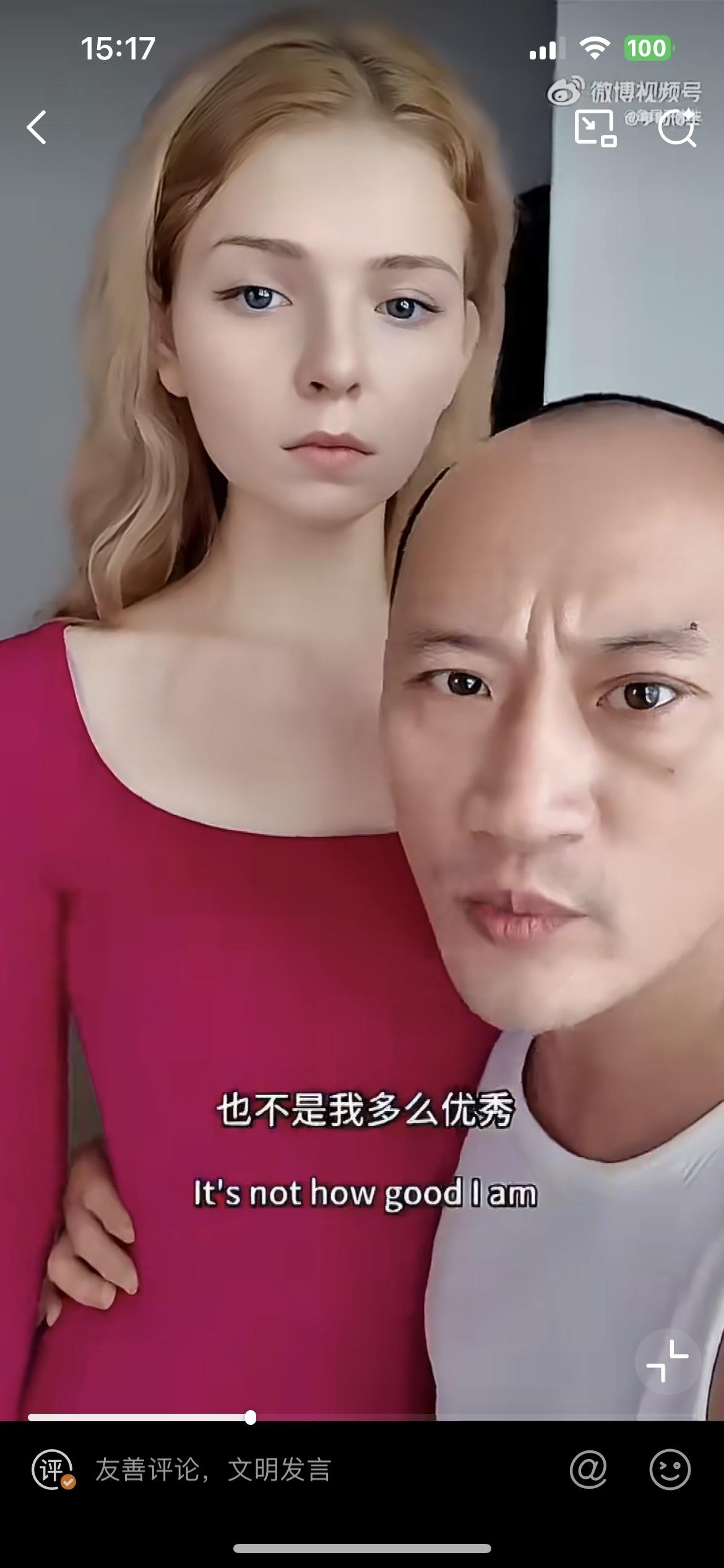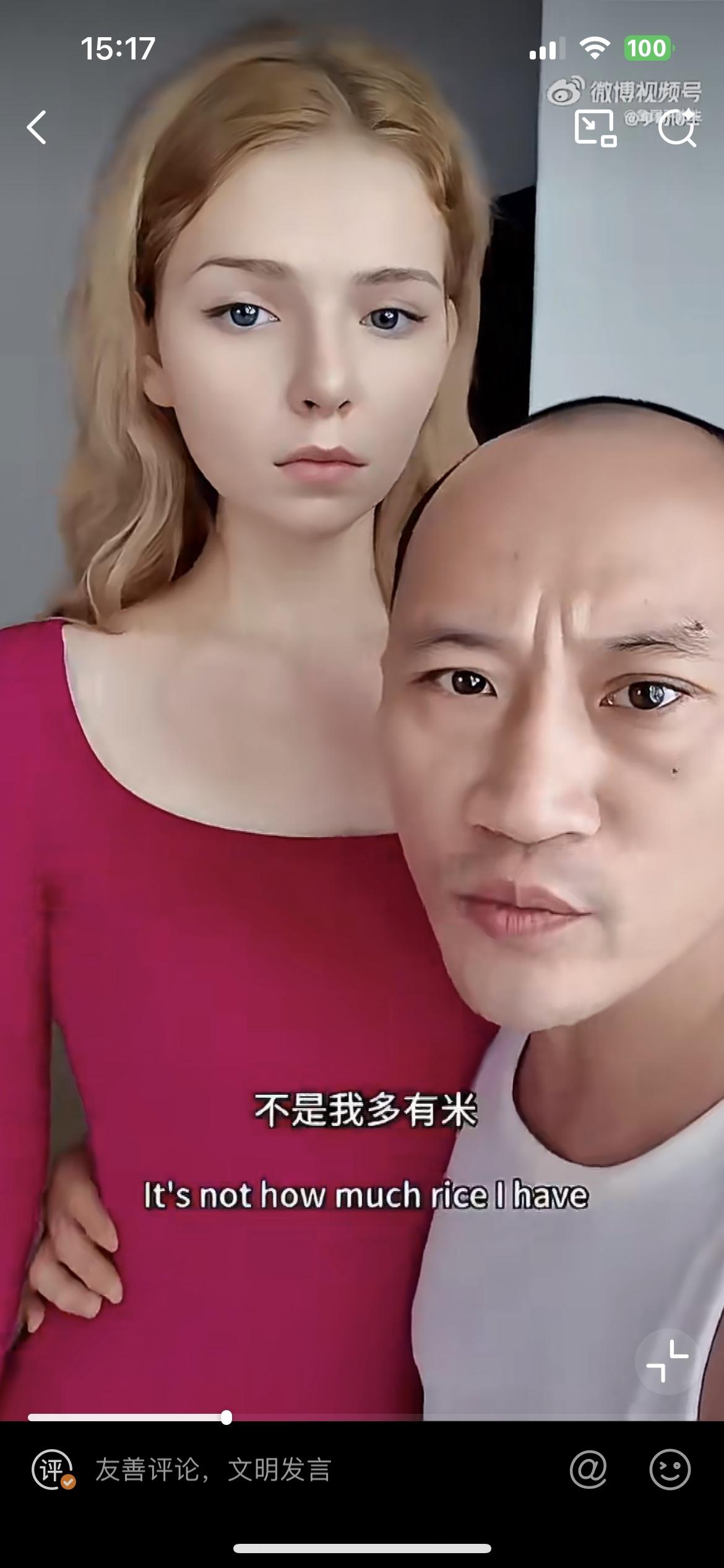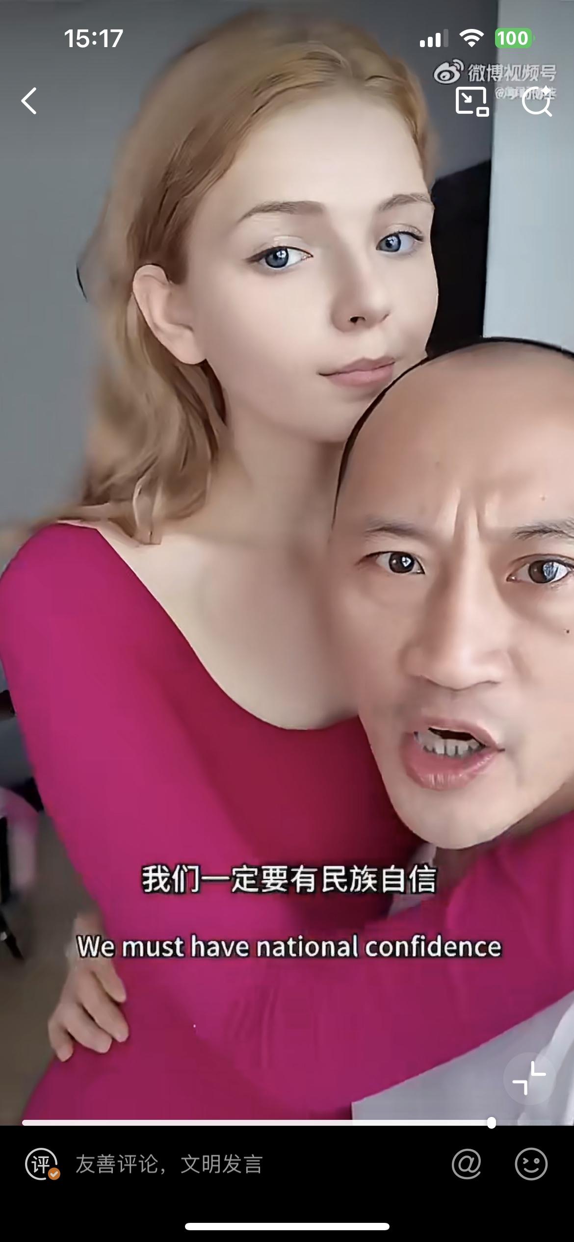 一光头男子发视频炫耀漂亮的洋妞老婆,因为强大的祖国和优秀的文化给了他底气和信心。不是因为他有米,所以一定要有民族自信。这个光头男子在瞎扯淡,哪个洋妞能认同你这些虚头巴脑的东西?虽然她们不会像国内一些女生明确要求有房有车要彩礼,实际上和她们一起生活,钱一定是你们爱情的基础,再去磨合饮食、文化、价值观的差异。否则光靠你一张嘴,人家压根就不会信你。
