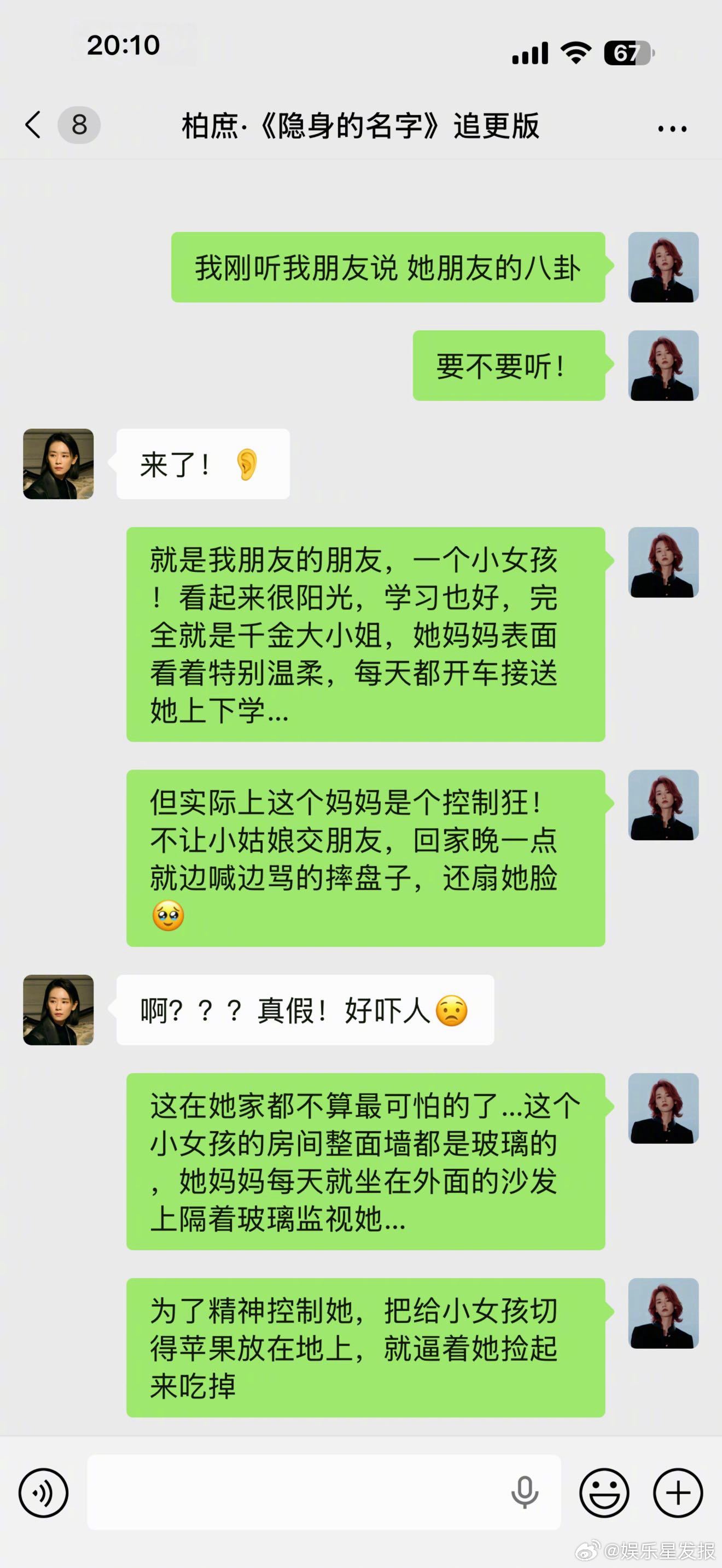 刘雅瑟聊天记录刘雅瑟曝自己的聊天记录竟然在微博发大瓜了!哈哈哈,姐姐竟然把电视剧隐身的名字里柏庶的故事用八卦的形式讲了一遍,太抽象了!事已至此,能不能讲讲柏庶为啥会到墓园工作呗,在线等!
