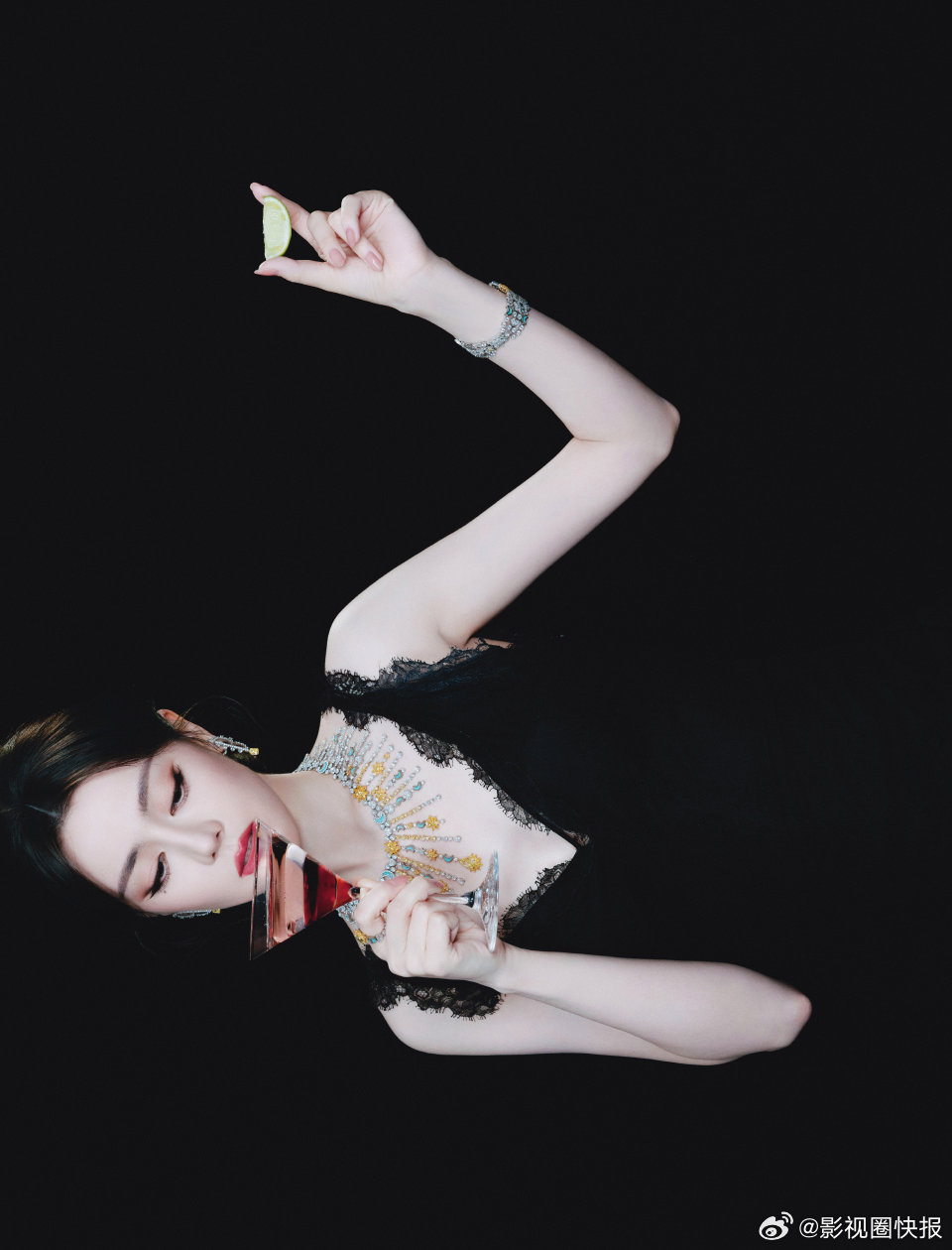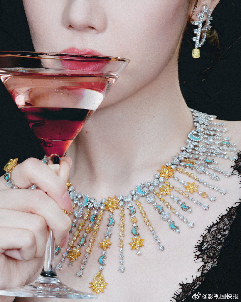 迪丽热巴黑裙碎钻 黑裙是低调的优雅,碎钻是耀眼的光芒,她一出现,便成了全场最亮的