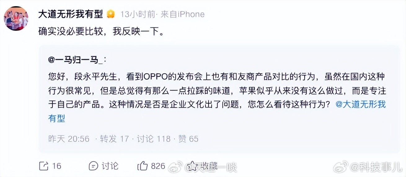 我去……还有这事。OPPO Find N6这一次发布会上对比了友商,有网友反映给了段永平,说这种情况是不是企业文化出现了问题。没想到段永平还真回应了,他表示:确实没必要比较,我反映一下。OPPO Find N6