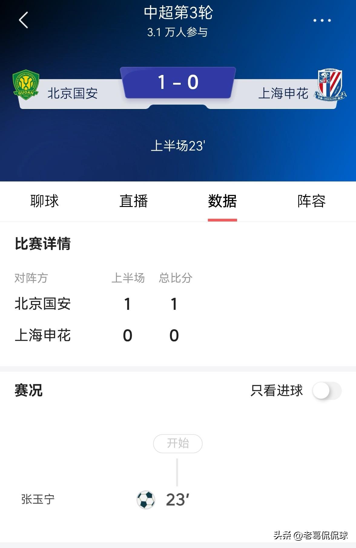 上海申花真是不堪一击啊!在今天上海申花客场挑战北京国安的焦点战中,当时比赛进行到了第23分钟,上海申花的球门被北京国安球星张玉宁头球破门得手,球队以0:1落后北京国安,形势看起来非常的不妙。 谁能想到如今的上海申花竟然如此不堪一击呢?以目前的情况来看,上海申花想要在客场逆转击败北京国安简直难如登天。