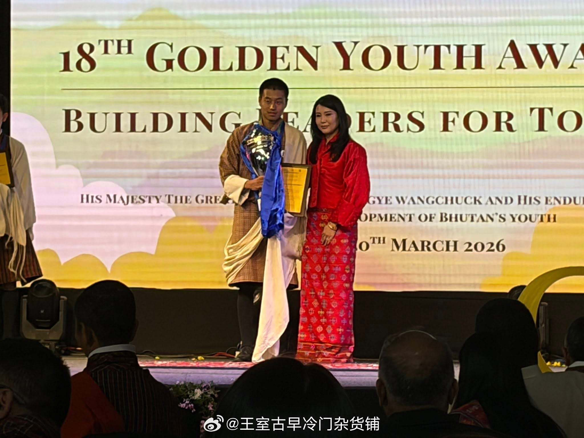 王室王室不丹王室 2026年3月20日,县城二王后和两个女儿出席颁奖典礼,这照片