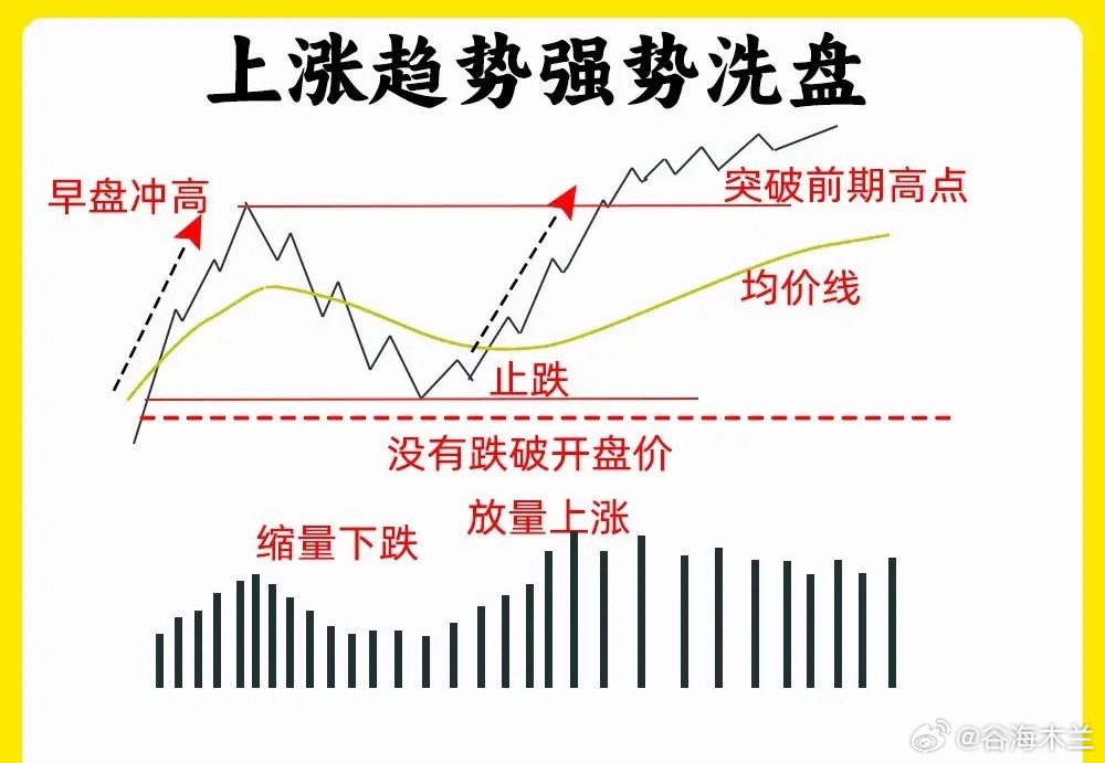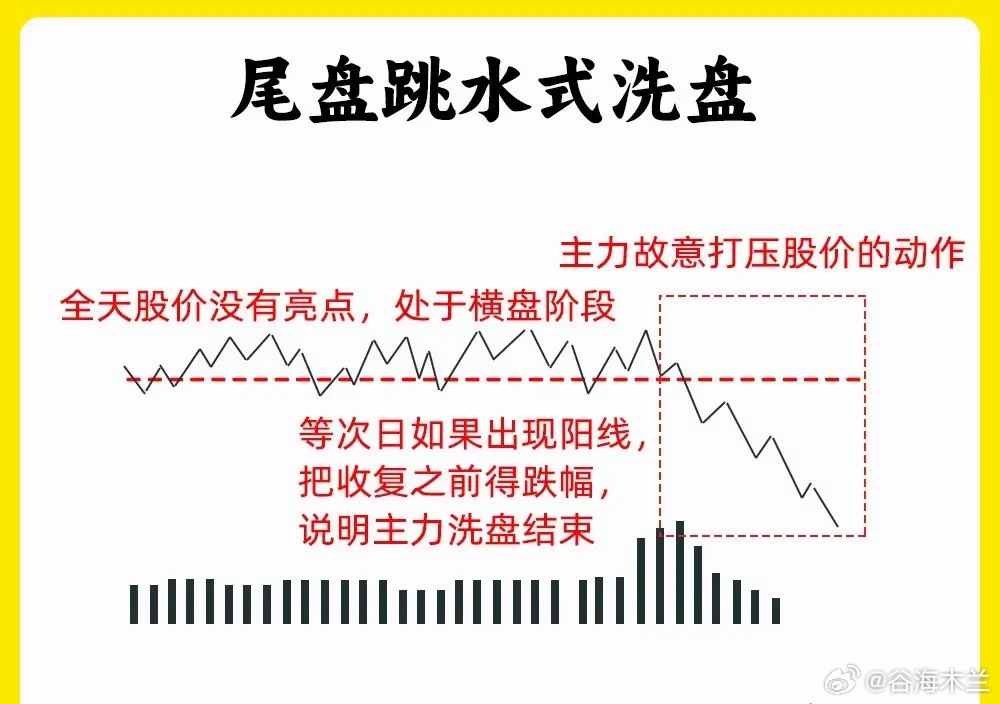 注意了!大部分散户在判断主力洗盘和出货,往往是大家最难分辨的。尤其是分时洗盘,分时图又是我们绕不开的试图。今天我就分享六种分时洗盘形态,建议认真看完还是老规矩,点赞收藏或评论888支持一下,我每天分享炒股干货,以免以后想温习找不到了一、冲高回落型洗盘在分时图里,股价在盘中出现大幅拉升,上涨幅度7%左右,主力故意不封板,随后股价开始回调。等到收盘的时候,一般是平盘、小涨收盘。这属于主力强势洗盘,我们需要注意两个细节,一个股价洗盘的位置,和股价冲高以后回调,成交量是否缩量二、上涨趋势强势洗盘在分时图里,股价处于上涨趋势里,突然股价开始大幅下跌,当时没有多少成交量,随后有开始止跌反弹向上,放出成交量,突破前期高点,这是主力边拉边洗的走势,我们需要注意,股价快速下跌成交量。整个分时图里,均价线一直处于向上三、波段式洗盘分时图里,股价先上涨,再下跌,再上涨,在下跌,整个过程里,股价低点在不断的抬高,整体的涨幅却不是很大。散户在里面就比较难受,这是主力用时间来换空间,清洗不坚定的筹码四、尾盘跳水式洗盘全天走势一般,处于一个横盘震荡的走势,等到尾盘突然大幅下跌,一般会超过3%但是呢,整个下跌过程里,成交量并没有放大,等到收盘就形成十字星或是长影线K线。五、炸板分时洗盘股价在分时图里,出现涨停,随后开始炸板回调,当时下跌的幅度不大,随后在封板,出现多次的炸板。所以就会导致换手率变大,这是主力手法,一般这种洗盘方法会在,一进二的阶段,已经出现首板涨停六、横盘震荡型洗盘全天窄幅震荡,织布机走势,这个盘面,看着很无趣。成交量出现缩量,主力已经锁仓,这种横盘缩量的走势很磨心态好了!以上就是分时图的六种洗盘形态。下方我准备了案例图,建议把案例牢记在心里。如果还有什么问题,可以留言告诉我。希望对大家有启发,也是最为基础的内容,一定吃透。我们下期内容再见