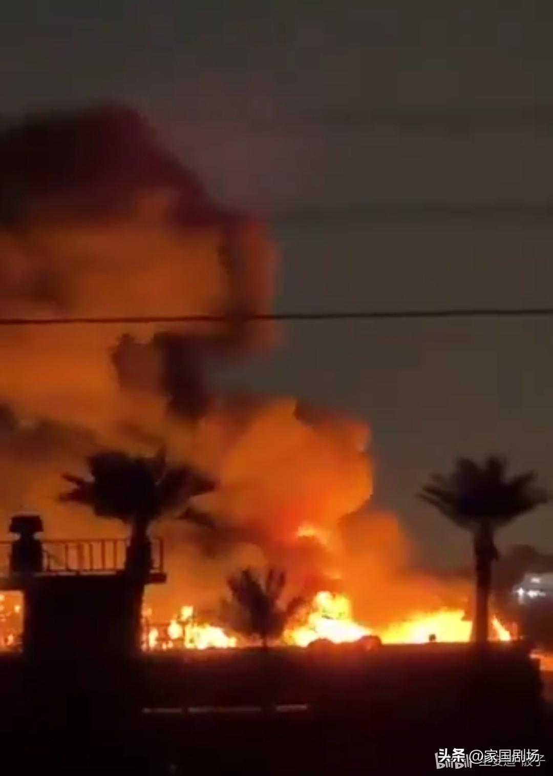 一段视频显示,伊朗支持的民兵组织,使用无人机对位于巴格达国际机场胜利营的美国国务院后勤设施,发动自杀式袭击,引发熊熊大火。 在袭击目标处,可以看到一台萨博长颈鹿1X近程防空雷达,表明该地点可能部署了反辐射导弹防御系统(C-RAM)。