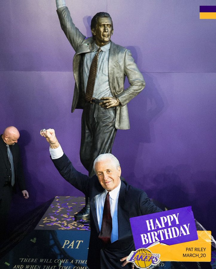 “祝NBA历史上最伟大的教练,我的挚友帕特-莱利生日快乐!”魔术师约翰逊。