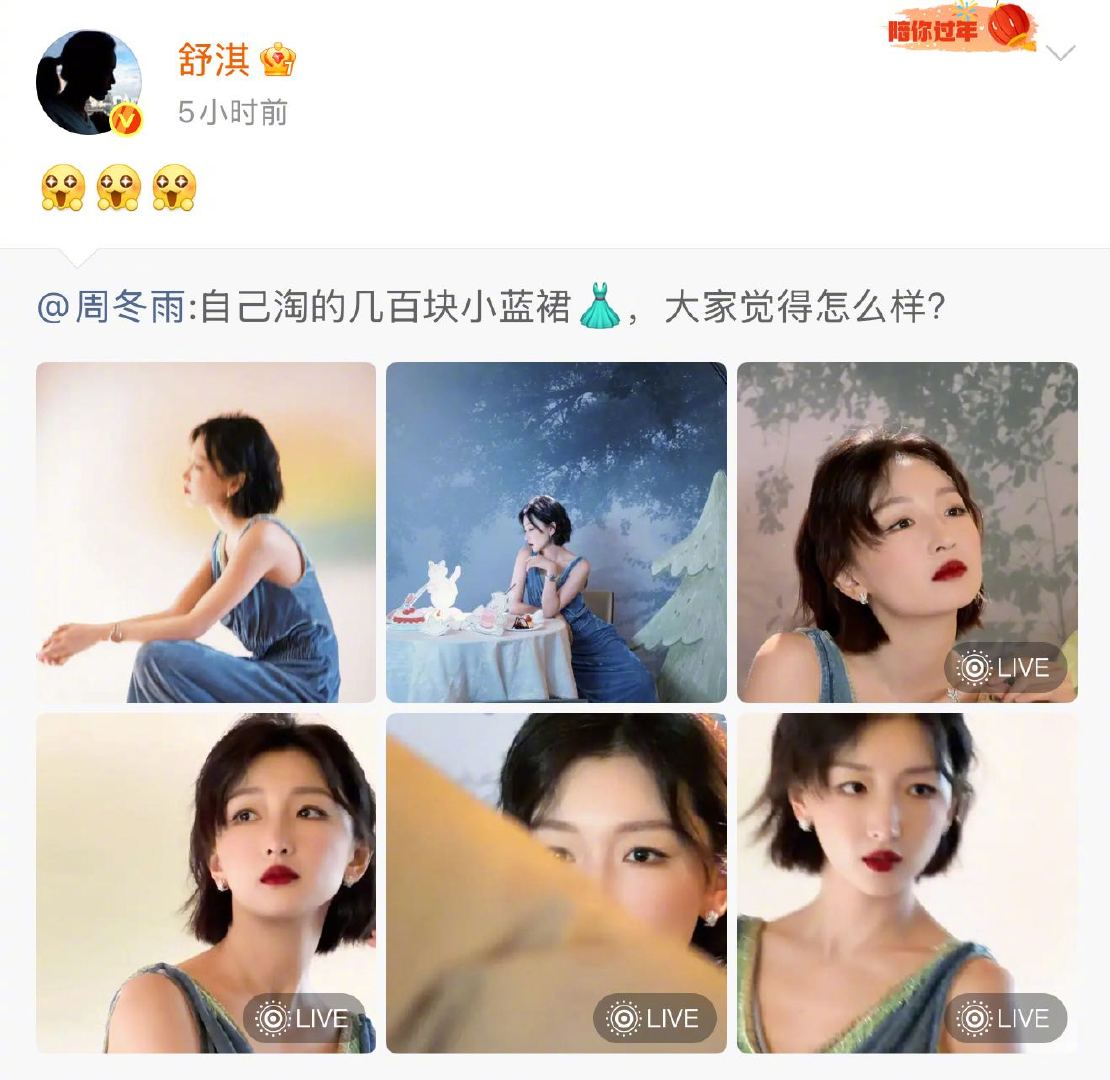 舒淇对周冬雨全肯定我夸闺蜜穿搭时就舒淇这样 周冬雨:瞅瞅我淘的百元小裙,好看不?舒淇:已经脑补出两个人激情分享的画面了,嗑到了