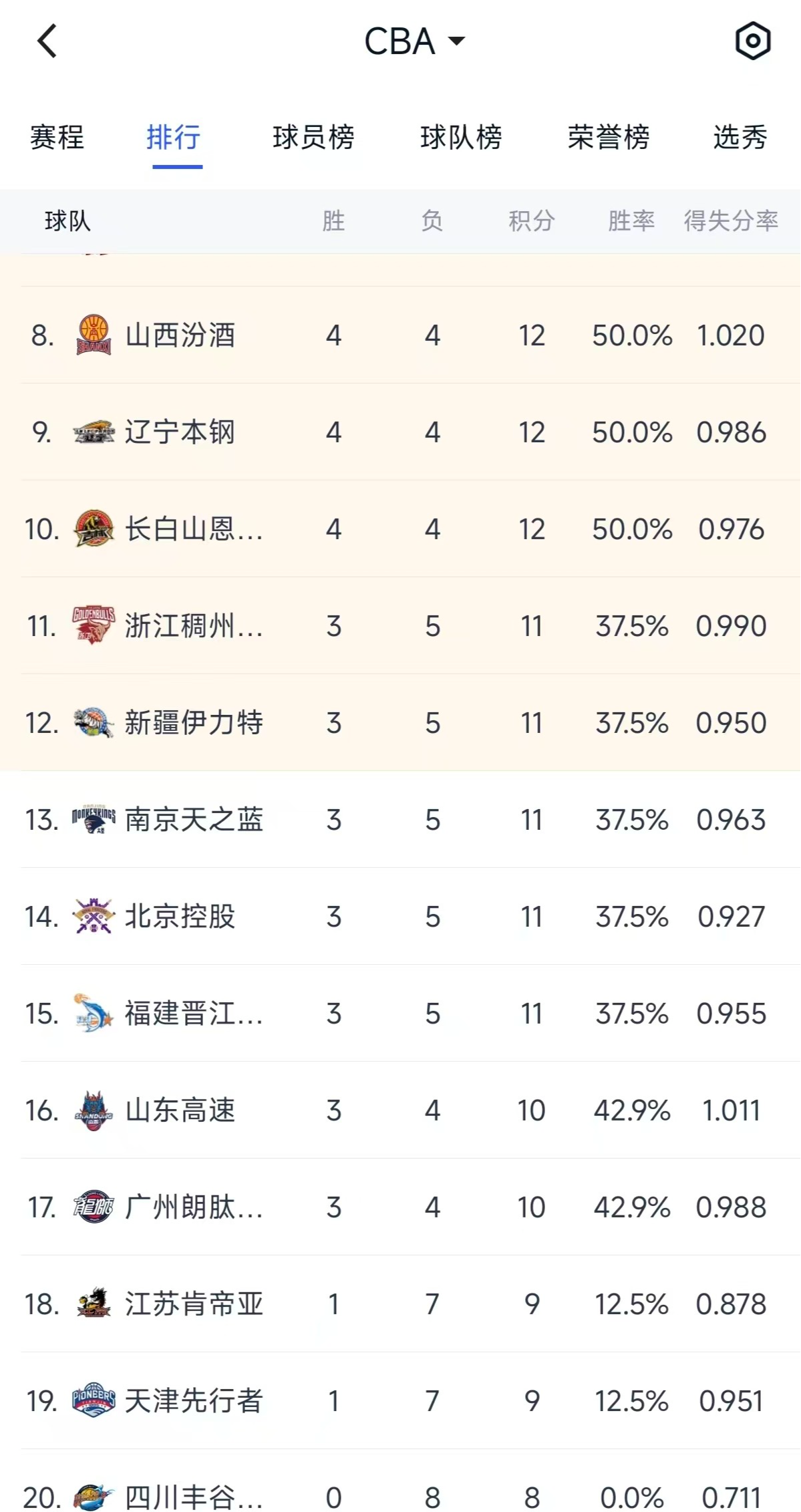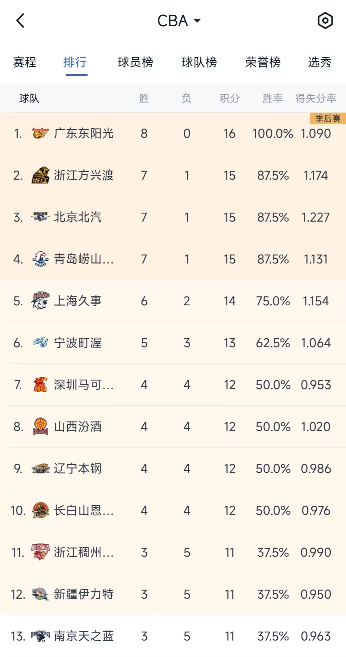 另外宁波对阵四川,上半场四川还意外的49比46领先宁波,下班宁波在罗凯文和法尔带领下实现逆转,最终以106比73大胜四川33分。宁波排名来到第6位,四川依然是垫底的第20位。