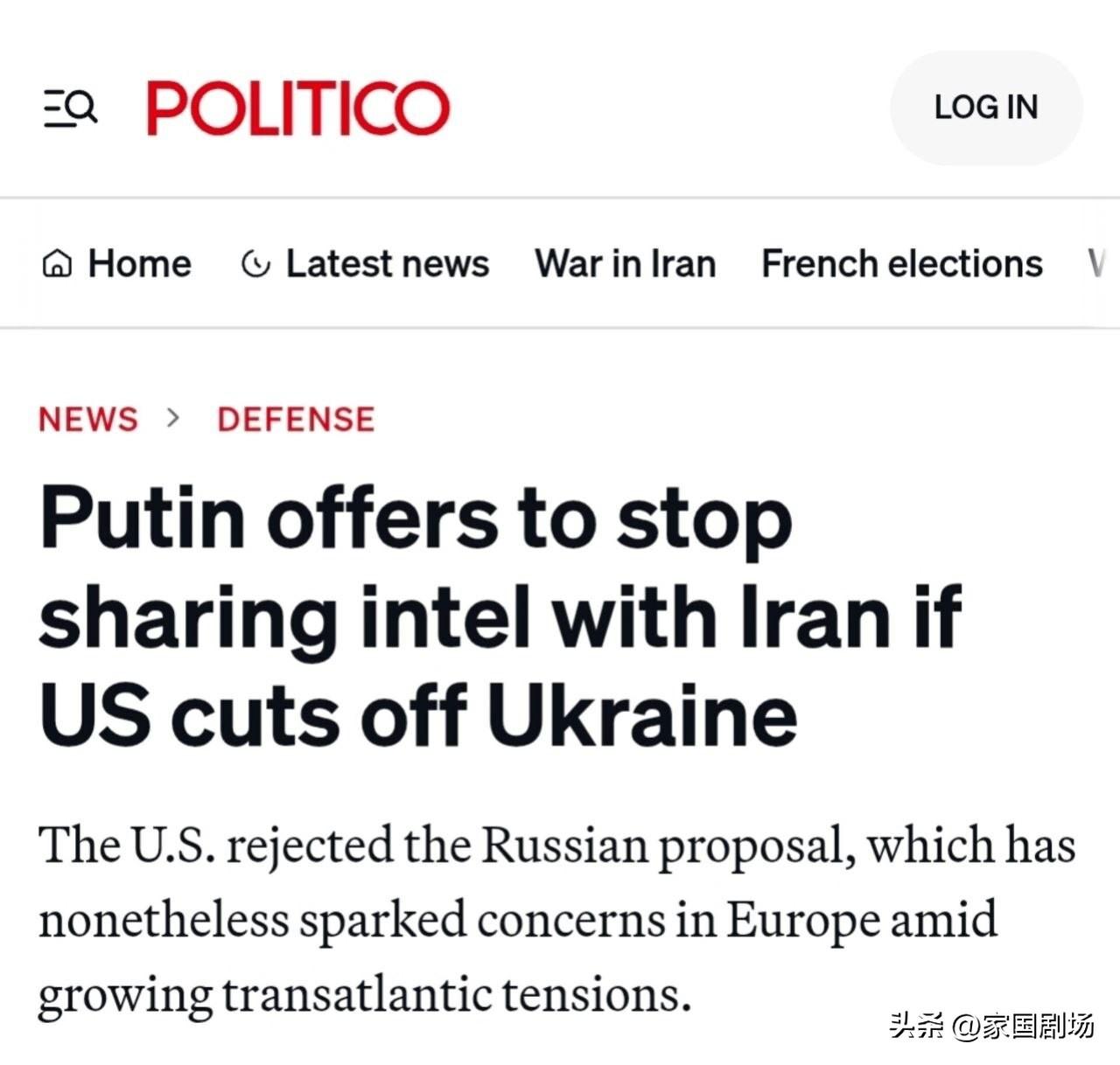 据称,莫斯科向华盛顿提出了一项简单的交易:如果美国停止向乌克兰提供情报支持,俄罗斯将停止与伊朗分享情报,包括美国军事资产的位置。