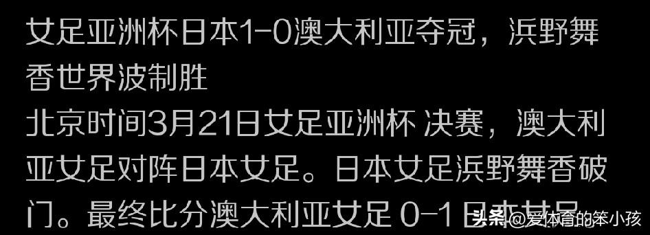 女足亚洲杯的争冠战的赛场上,上演了日本女足和澳大利亚女足之间的强强对话。显然,澳大利亚女足在亚洲足坛和其他对手相比,已经是一支实力强悍的球队。但是与日本女足球员整体攻防还有个人实力突出的竞争力相比,还是小有差距。到目前为止的4届亚洲杯,两队交锋澳大利亚女足和日本女足的比拼当中,大部分时间都是日本女足占据上风,他们一起进入争冠战的对决中,日本女足也三次都是以1:0的比分战胜对手,锁定最后的胜利。 这也从一个侧面说明澳大利亚女足和日本女足之间的差距。而澳大利亚女足在这次亚洲杯半决赛当中也是以2:1的比分战胜中国女足,这无疑告诉我们中国女足和澳大利亚女足之间相比起来也存在着一定实力差距。 这两种差距叠加起来,就是中国女足和日本女足之间综合气场和整个作战能力方面的档次差。这种差距来自于多个方面,真的不是短时间内能追上和抹平的。 也让我们期待着通过这样的比赛,看到中国女足和日本女足还有澳大利亚女足差距的同时,还能发现自身的问题,更希望中国女足在未来的亚洲赛场上先站稳脚跟,再力争到世界杯的舞台上去争取更大的突破和进步。 我们也需要把掌声送给像日本女足这样全员作战、整体竞争力十足的强队。整个亚洲杯比赛中,他们只在与韩国队的交锋当中失掉一球,如此强大的攻击力也确实需要各支球队向他们学习。不是吗?