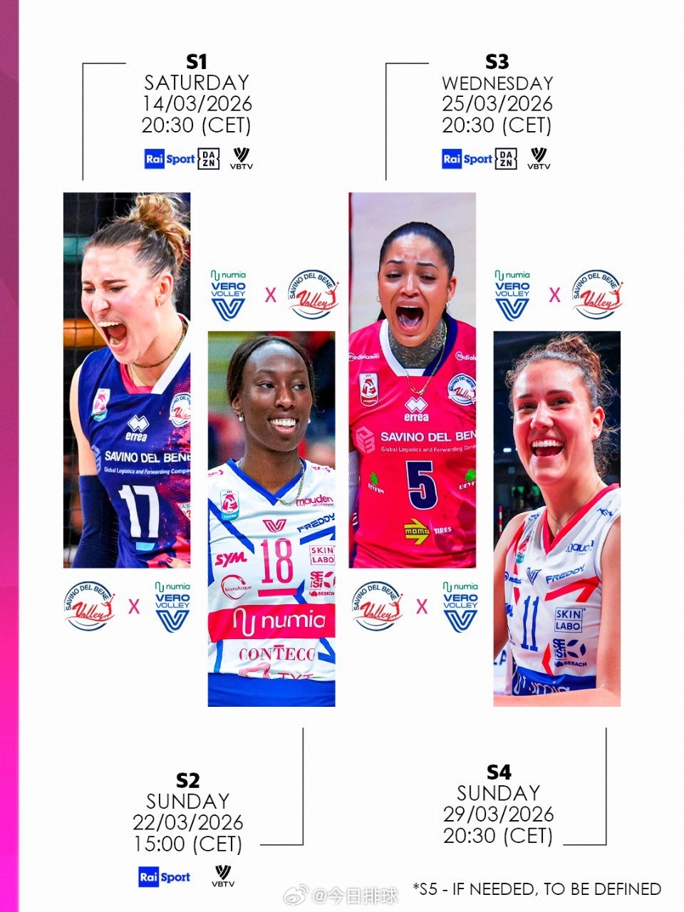北京时间明天(22日)凌晨04:15,2025-2026女排意甲 半决赛第二场,