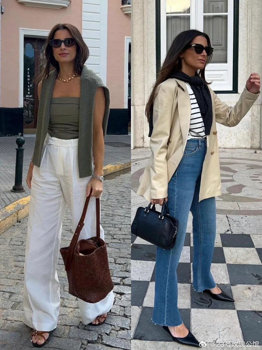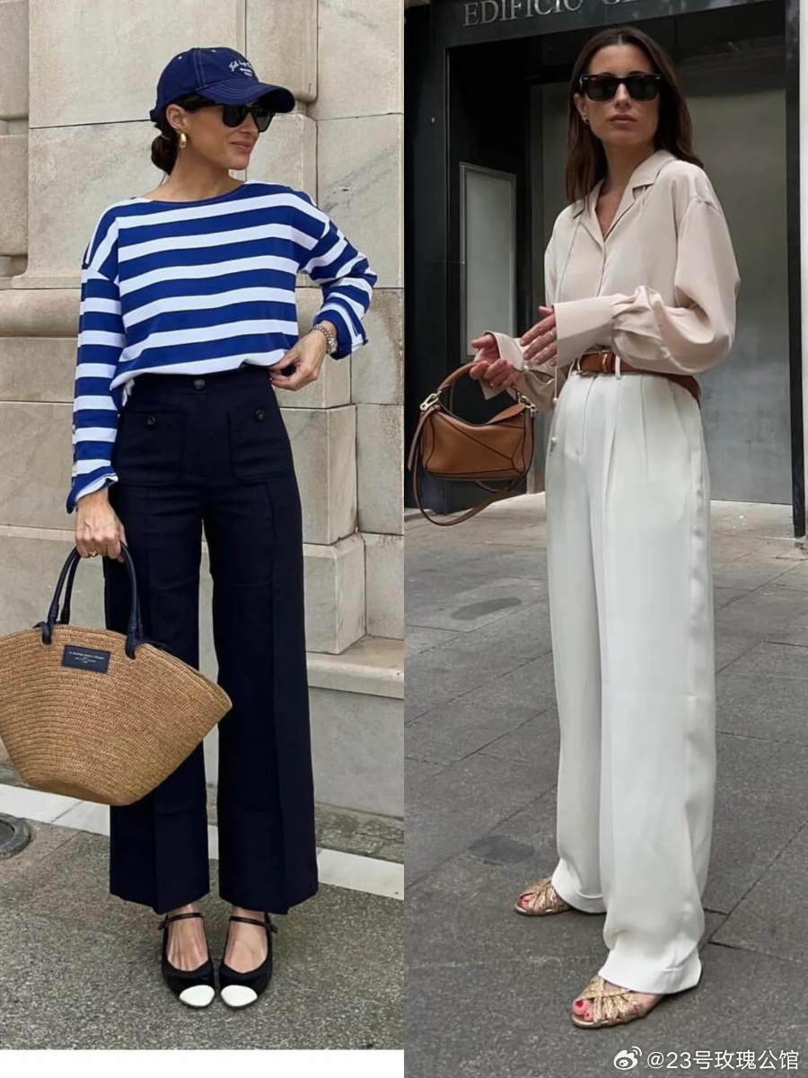 “阔腿裤+低跟鞋”是春天最百搭穿法,这样搭配简约利落!“阔腿裤+低跟鞋”是春天最