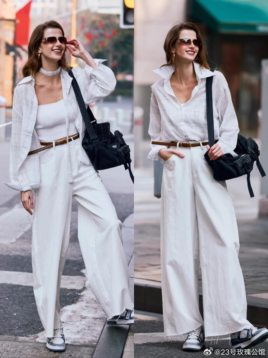 清新穿搭指南:蓝白撞色+白色牛仔裤,轻松出街!🌞👗👠