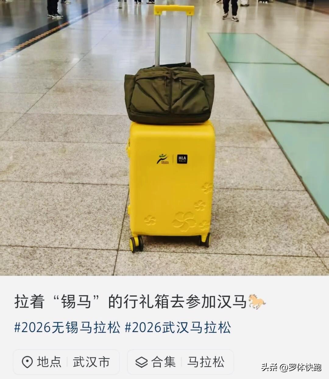 今年的无锡马拉松参赛装备中有个海澜之家发的拉杆箱,从前方发来的照片看一个地铁车厢里几乎都是拉着无锡马黄色拉杆箱的跑友,这估计会让几十万没中签的跑友羡慕不已,要知道今年锡马总报名人数逼近49.6万,全马整体中签率仅9.9%,半马中签率仅有2.9%! 然而,有跑友同时中了3月22日开跑的无锡马拉松和武汉马拉松,要知道2026年武汉马拉松报名总人数超过45.1万,全马中签率7.5%,半马更是跌至5.7%! 跑友先去无锡领了参赛装备,又拉着无锡马的拉杆箱去武汉马拉松领物,这是天选之子? 无锡马拉松 武汉马拉松 马拉松