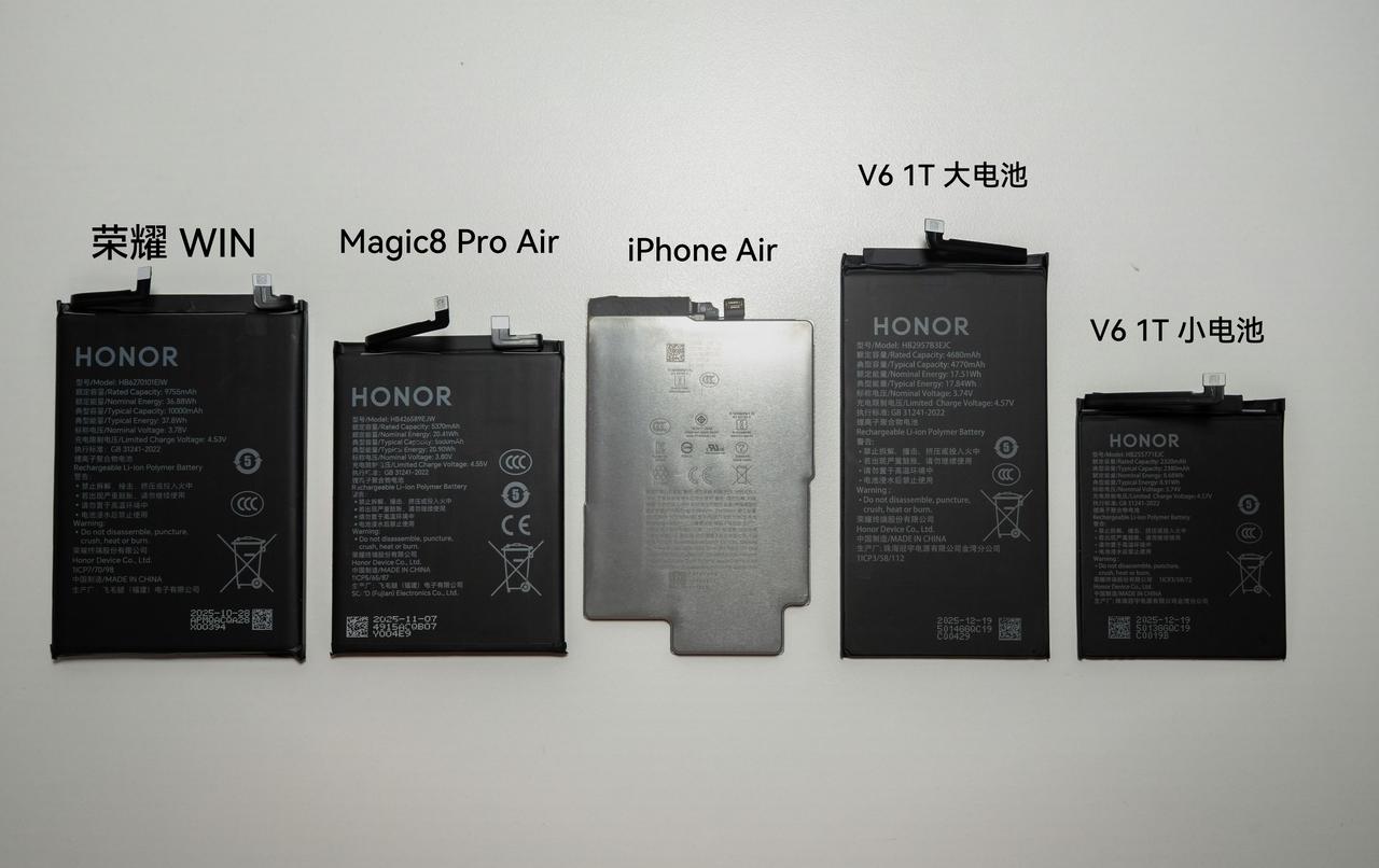真是不比不知道,有博主拆机揭开了手机电池厚度的真相,荣耀Magic V6刀片电池厚度仅2.3mm,连常规电池厚度的一半都不到!直接颠覆了大家对手机续航的认知。 博主从近一年拆过的几十部手机中挑出了四款薄到离谱的电池,看完才懂啥叫黑科技碾压! ①荣耀Magic8 Pro Air 4.06mm ②荣耀Magic V6大电池 2.75mm ③iPhoneAir 2.7mm ④荣耀Magic V6小电池 2.3mm 重点来了!咱们日常用的手机电池,厚度基本都在5-6mm啊家人们!荣耀Magic V6这款青海湖刀片电池,直接薄到常规电池的一半都不到!续航还能拉满! 别人还在做5mm+的常规电池,荣耀直接卷到2.3mm超薄赛道,这技术含金量谁看了不喊一句绝!难怪敢叫“刀片电池”,这厚度+续航的双重拿捏,直接把同行甩了十条街!你们觉得2.3mm的超薄电池,能做到续航和手感兼顾吗?一起聊聊你想让自己手机用上这种电池不! 为什么推荐荣耀手机?