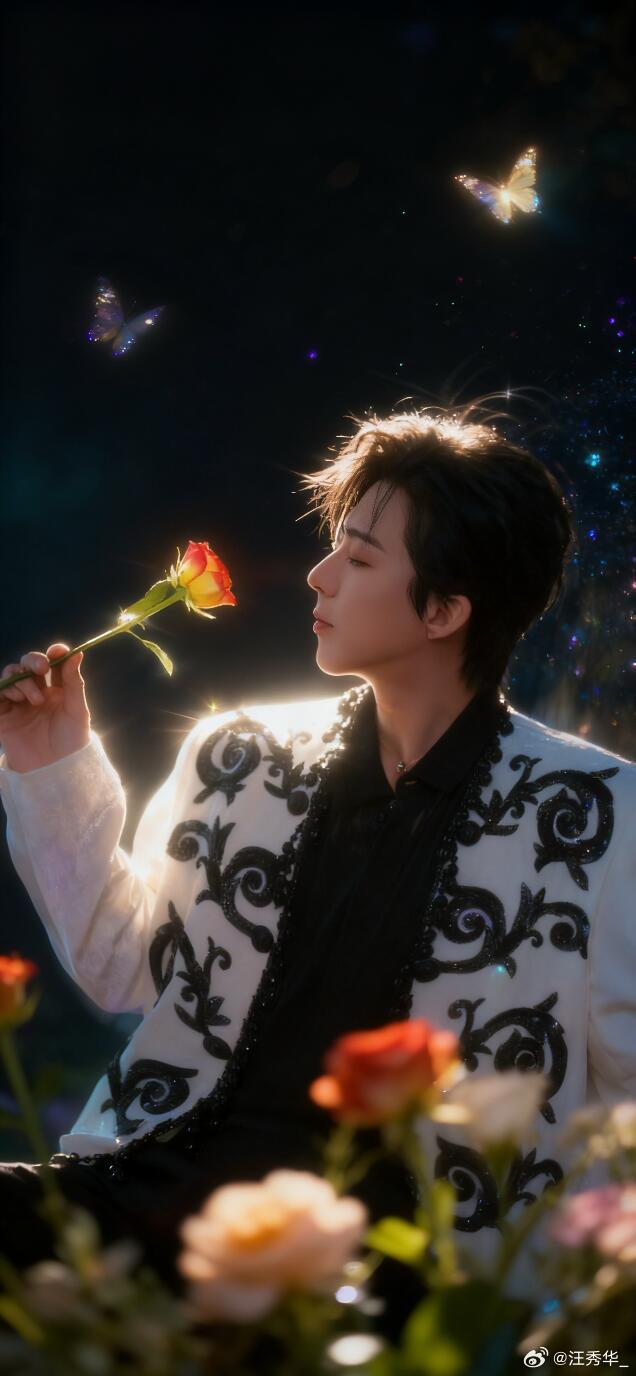 刘宇宁手捧黑玫瑰的救赎感 直播镜头里这一束黑玫瑰,是黑暗里唯一的光,救赎感拉满,