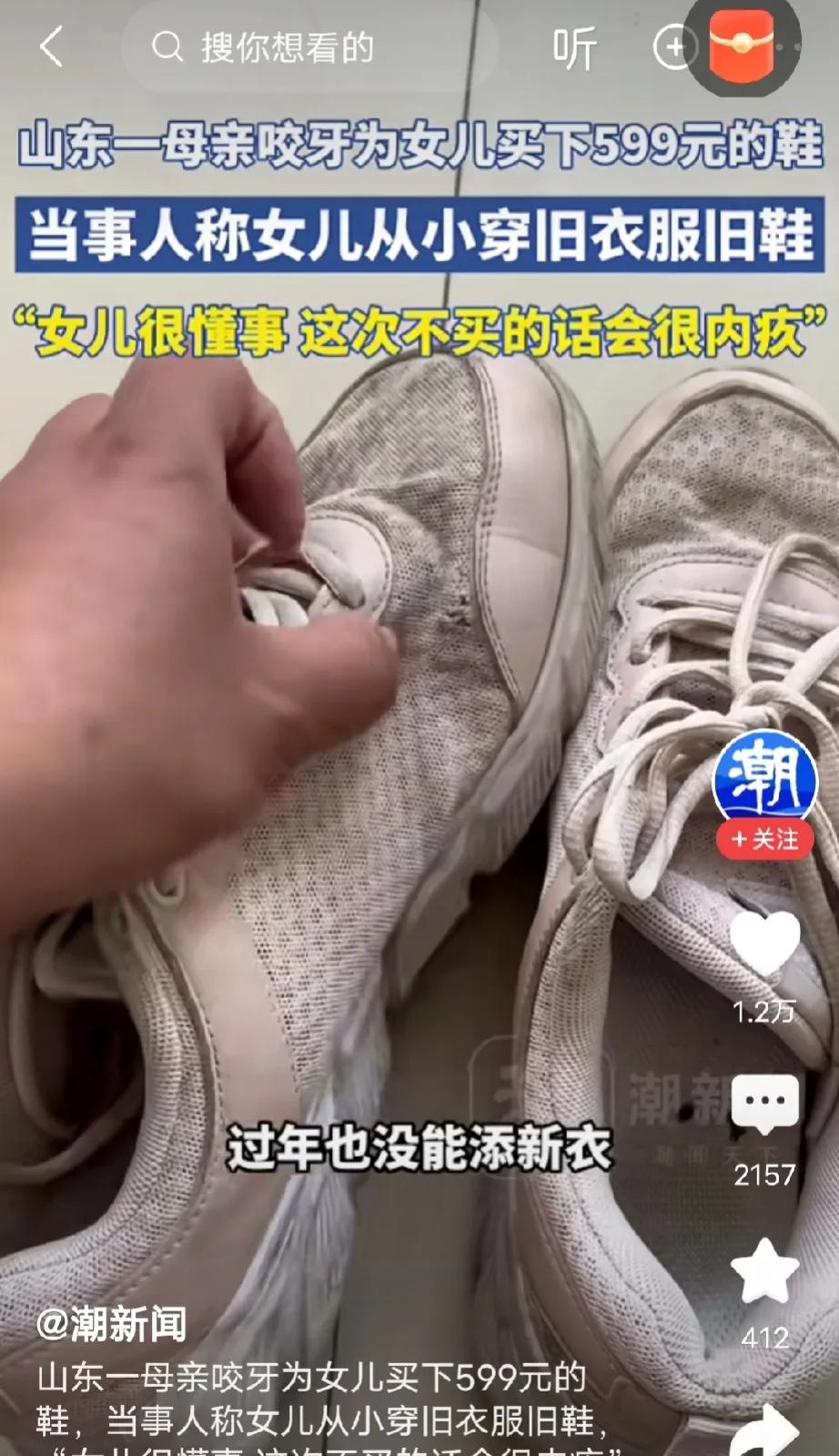 山东威海,女孩看上一双599元的鞋子,妈妈觉得太贵舍不得买,可看到女儿那渴望的眼神,再想想女儿平时的贴心表现,女子犹豫了,可599实在超出家里的预算,母女仨人在鞋店门口坐了半个钟,最终妈妈还是带着女儿买下了鞋子。最终,妈妈一番话网友纷纷表示,果然女儿是贴心的小棉袄。 3月17号,红艳带两个女儿到县城整牙齿的时候打算顺便给大女儿买双鞋。 母女仨从牙科诊所出来后,连续逛了几家鞋店,都找不到合适的鞋子。 就在她们准备放弃的时候,红艳的大女儿终于在某品牌鞋子看中了一双。 那双鞋子的鞋跟又软又舒服,鞋面也很漂亮,大女儿一穿上脚就有些舍不得脱下来了。 可她们一问价格,店员说折后价599元,红艳一听,瞬间就不淡定了,这个价格远远超出她的家庭预算,这要是在平时,买那种一两百的,这个价格可以买好几双。 女儿看出红艳的犹豫后,赶紧把鞋子脱了放回原位,她懂事地说,妈妈不买了,我们走吧,再找找看。 红艳知道女儿是心疼钱,心疼她不容易,其实红艳也舍不得,她是想买又舍不得买,所以带着两个女儿离开了那家店。 从店里出来后,红艳和两个孩子坐在店铺门口,久久没离去。 没帮女儿买下那双鞋,红艳心里有些愧疚,可一想到那价格,她又忍住了,她不知道该做什么样的选择。 她问女儿,该怎么办?大女儿笑了笑,没有出声,看得出她真的很想买,但是又心疼妈妈花钱,所以她没出声。 看到女儿懂事体贴的样子,红艳更加愧疚,她觉得如果不买下那双鞋,实在太对不起女儿了,最终,她咬咬牙,还是返回店里买了那双鞋,店员给她打了9折,最终她花539元买下鞋子。 大女儿很感动也很开心,她不停地跟妈妈道谢。 回家后,红艳把这个经历做成视频发到网上,她的视频火了,播放量达到160多万,光评论就有5000多条。 有人说599块,对于很多普通家庭来说还是很贵的,没必要买那么贵的,这还有可能让孩子养成攀比心,久而久之对她不利。 也有网友说,女儿这么懂事,还犹豫那么久,如果是我,我会当场买下,送给女儿。 事后红艳发视频解释说他的女儿不会跟人攀比,她今年12岁了,从小到大都很懂事,孝顺。 红艳说这是女儿第一次买这么贵的鞋子,她的旧鞋子已经开胶,甚至有破洞了,但是他从来没有吵闹着要买鞋。 女儿从小到大很多时候都是捡别人旧衣服来穿,他也毫无怨言,给她穿什么她就穿什么,家里有好吃的,她会先想到爸爸妈妈。 年前给女儿在网上买了新衣服,但是到货后试穿不合适就退回去了,结果过年的时候女儿都没有新衣服穿,如果这一次没有给女儿买这双鞋,红艳的心里会一直很愧疚。 红艳说,买下鞋子后女儿很开心,她自己心里也舒坦。 事后网友纷纷表示,果然女儿是母亲的贴心小棉袄。 不过也有人提出争议,父母履行抚养义务应量力而行,超出家庭实际负担能力的高消费,并非法律要求的必要抚养支出,一味满足也可能无形中改变孩子的消费观念,此事没有绝对对错。 《民法典》第26条规定,父母对未成年子女负有抚养、教育和保护的义务。 本案中女孩12岁属于未成年人,妈妈为其购买鞋子是履行抚养义务的体现,女孩旧鞋破损且懂事不攀比,妈妈出于关爱购买贵重鞋子,既符合最有利于未成年人的原则,也在法律允许的合理抚养范围内,该购买行为合法有效,不存在法律争议,网友争议的价格高低属于家庭消费选择,不违反法律规定。 不过也有人提出争议,父母履行抚养义务应量力而行,超出家庭实际负担能力的高消费,并非法律要求的必要抚养支出,一味满足也可能无形中改变孩子的消费观念,此事没有绝对对错。