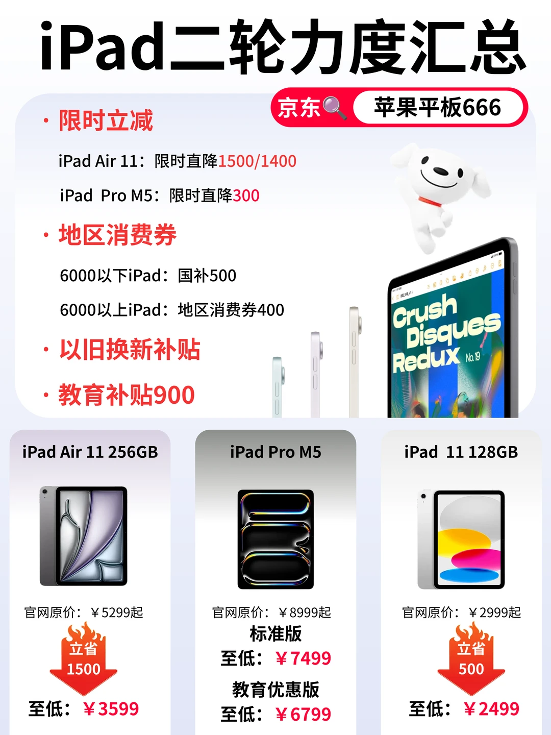 准备入手的宝子别犹豫啦,第二波真的是全网低价,早买早享受还能避开物流高峰~另外别忘了去京东🔍【苹果平板666】享优惠喔~
