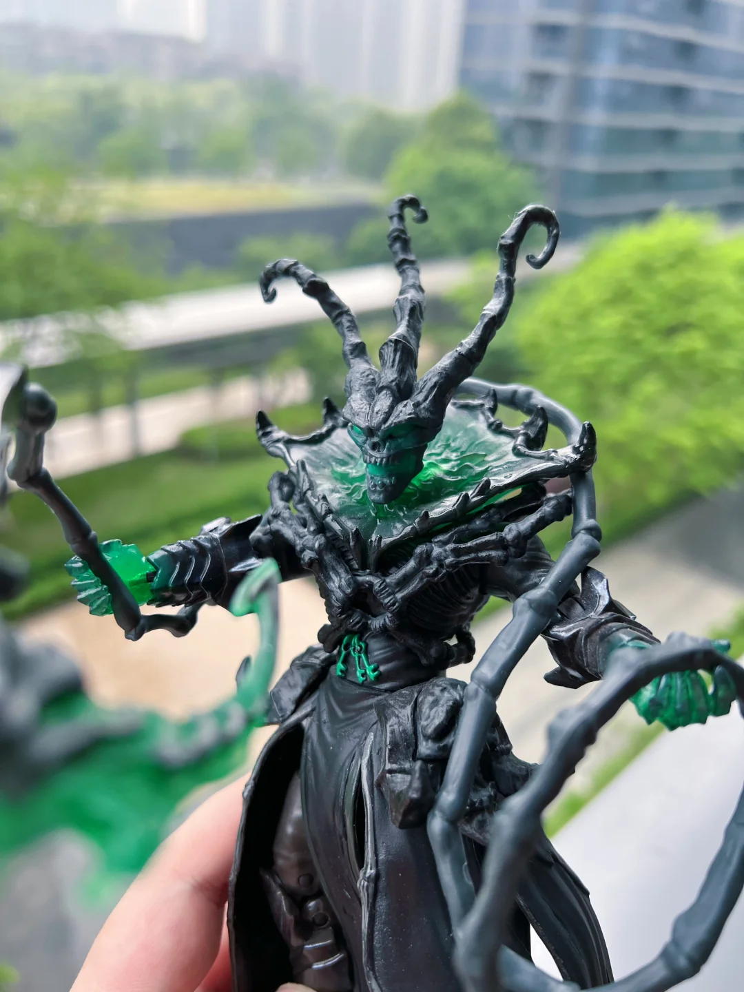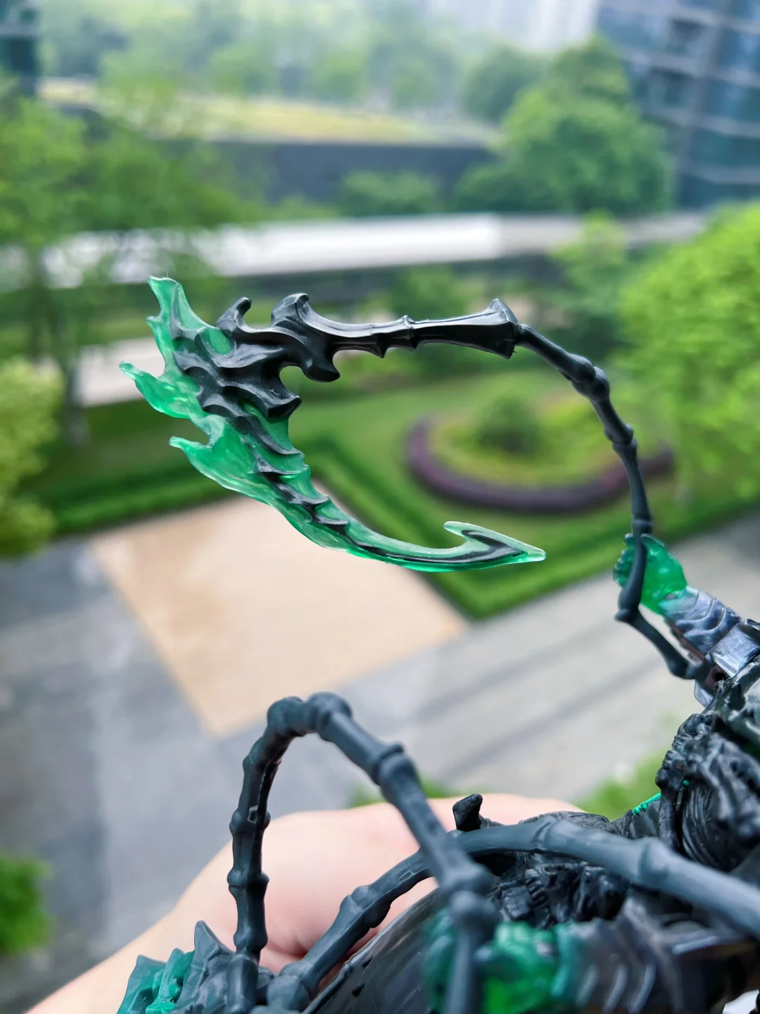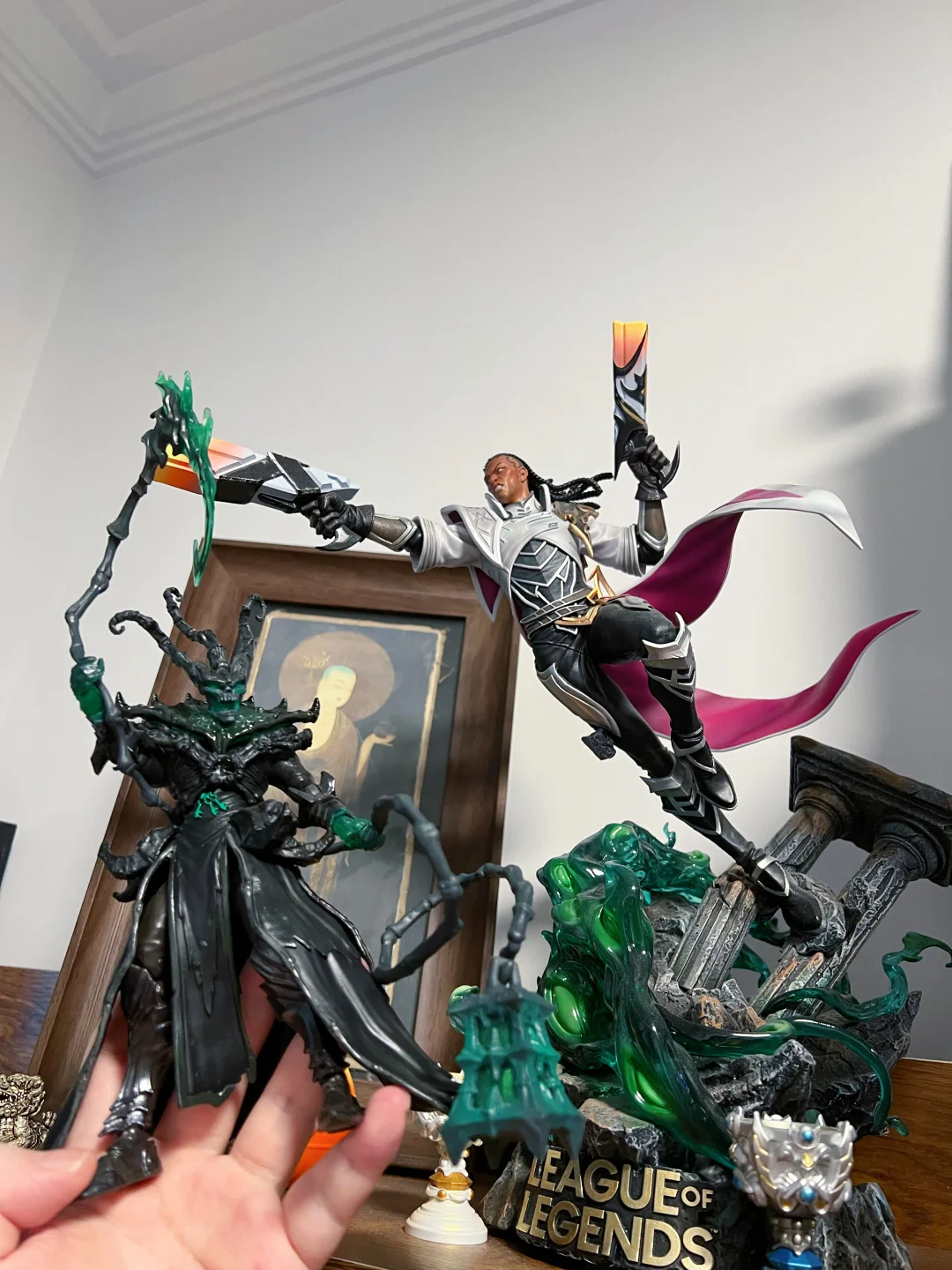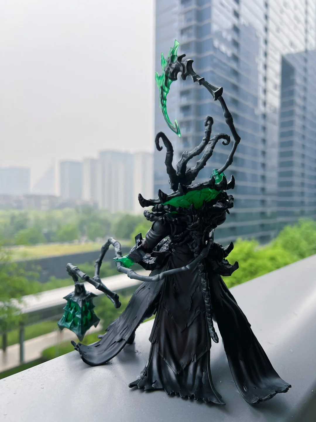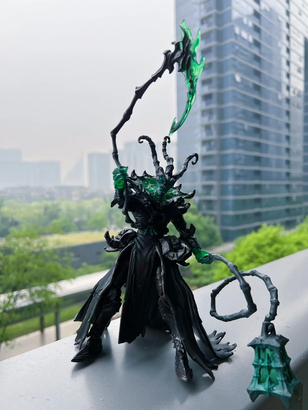 下雨了拍的有点暗,调太亮又不太自然,就这样吧。魂锁典狱长锤石,能动性还行,但有限。建议云顶里面可以和卢锡安搞个羁绊啊!还有就是这个手办可以单独摆放在高处,能当钟馗用…[doge]