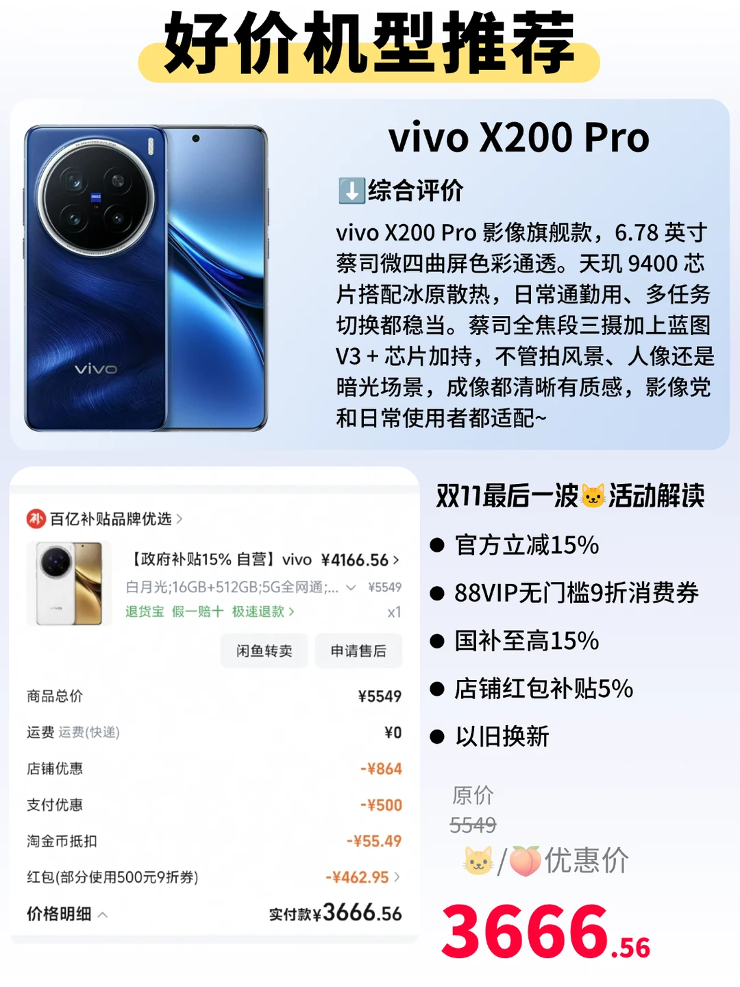 现在力度依旧很足,店铺优惠、国补、分期免xi、88VIP券、以旧换新等直接叠加,不用硬凑单也能拿到比平时划算的价格,省下来的💰刚好配个壳膜或耳机~